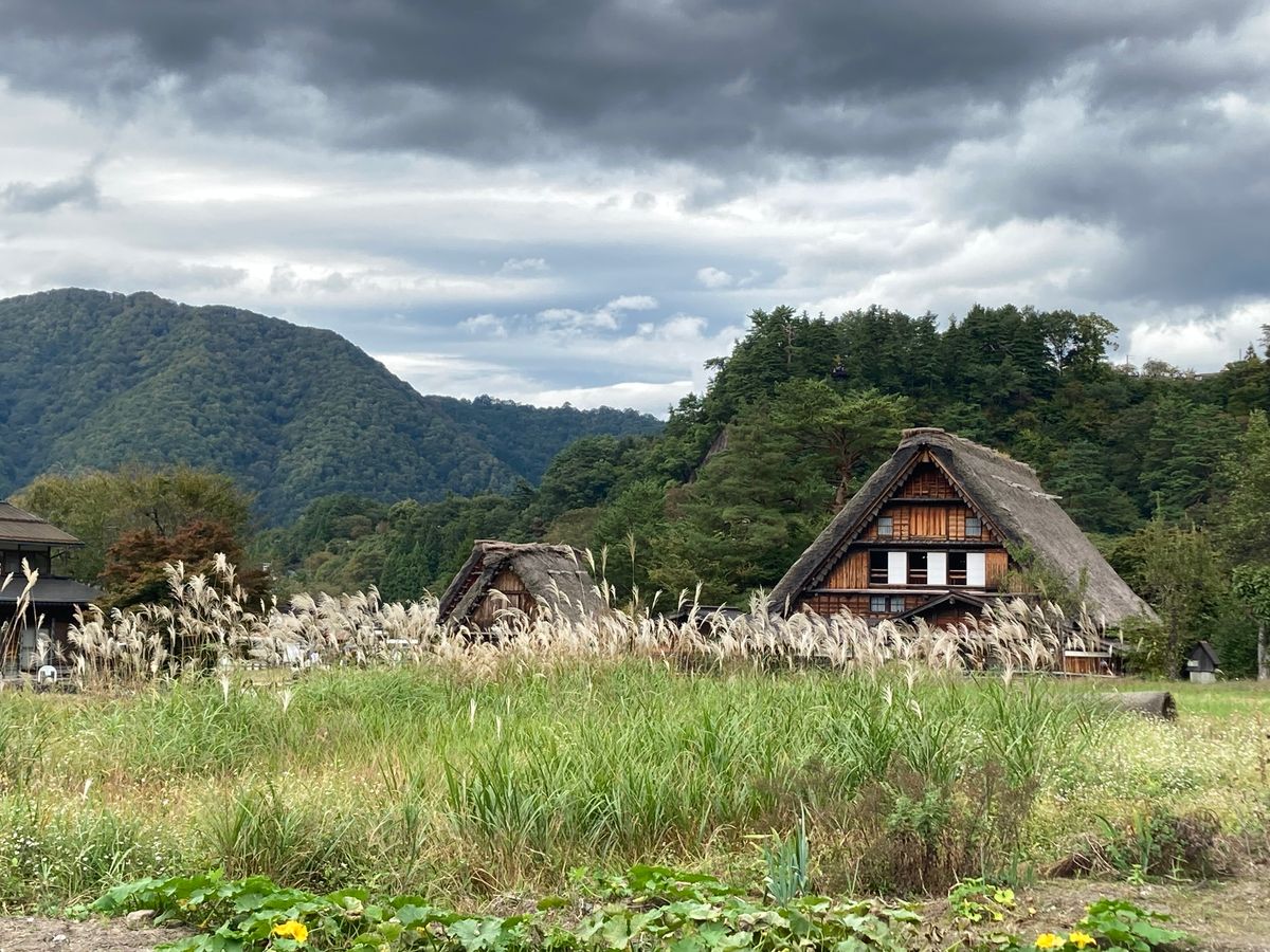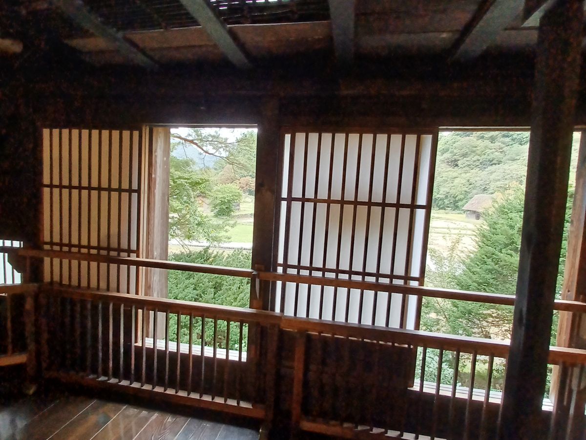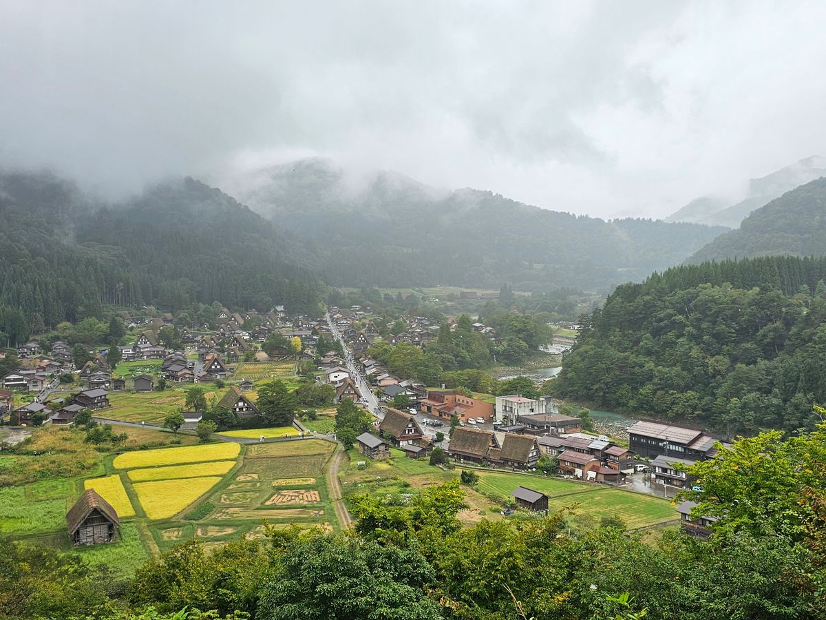 Yes, it was a warm day, but it rained. As we approach the season of autumn leaves, the mountains surrounding Shirakawa-go may have been shrouded in mist, and the rain-soaked leaves of the trees might have looked beautiful against the gassho-zukuri architecture.