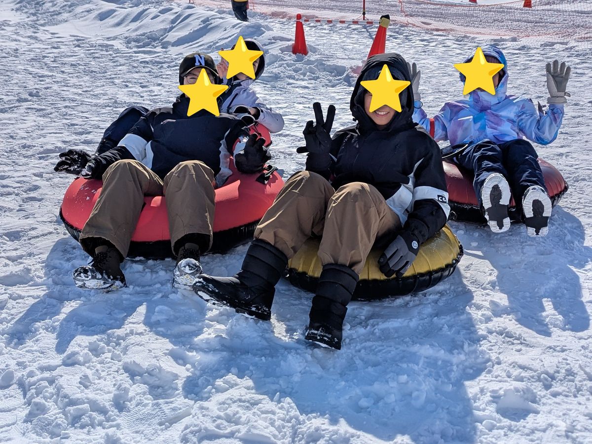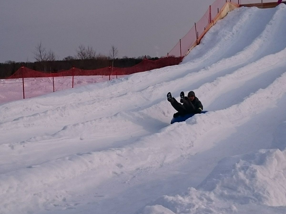 スノーチューブでは普通にすべるだけでなく、うつぶせ、後ろ向き、手つなぎなど楽しい滑り方を教えて頂いて、何十回も遊んでいました。