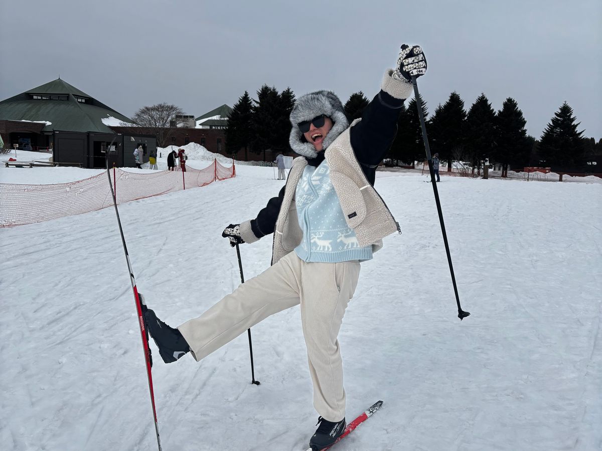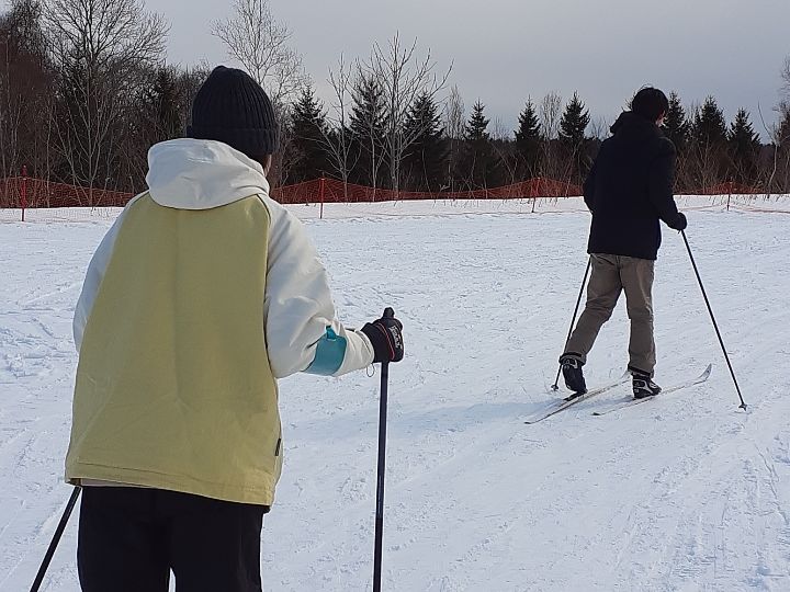 It was my first time trying cross-country skiing, and surprisingly, it was quite easy and provided a light workout. I was worried about the cold, but there was a clubhouse where we could take breaks and warm up, so it was better than I expected.