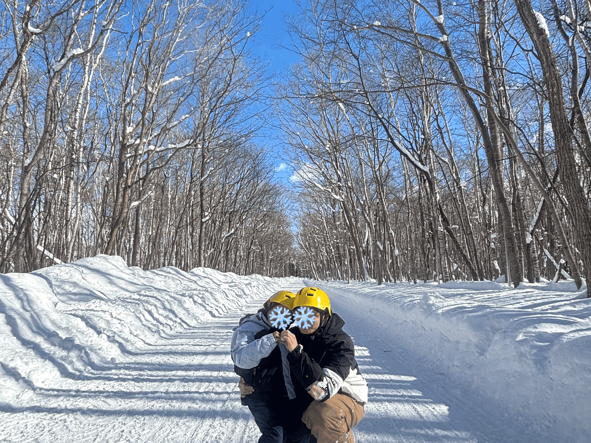 The three of us were truly moved by the vast snowy scenery, and although we were eager to experience the activities, we spent an hour enjoying ourselves by lying in the snow and having snowball fights in the free area. That alone was enough for us as residents of a warm climate, but of course, we had a blast afterward.