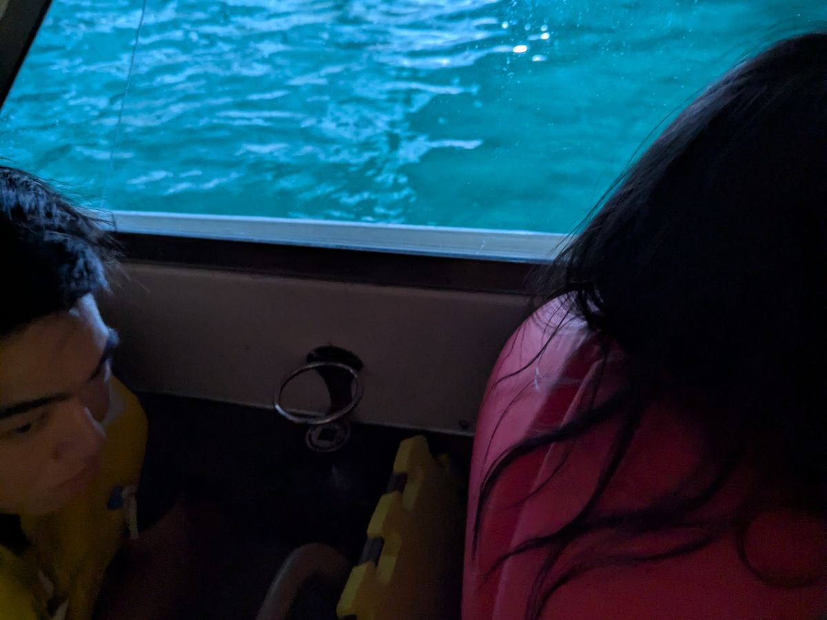 天気が曇り気味だったのもあり、綺麗に見える!ほどではないけれどお魚は沢山見えました。船もやや揺れるレベルだったのもあり、乗り物酔いをほぼした事ない私が海中をじっと見ていたら船酔いをしました。
