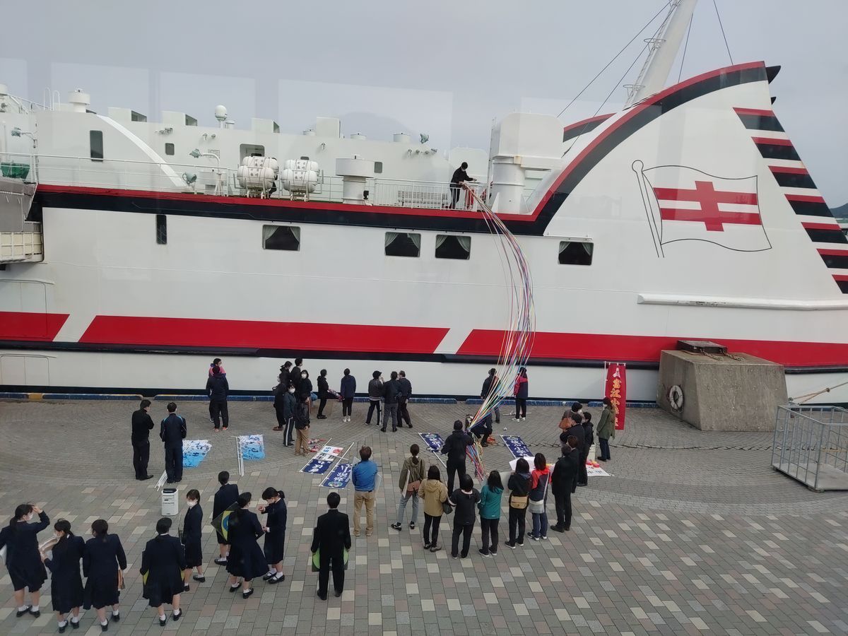 At the end of March, it seems to be the time for teachers' assignments and departures. Of course, there were paper streamers, and at the port, there was a grand send-off with a brass band and dancing placards. It reminded me of my time on foreign routes 30 years ago. Tears (of emotion).