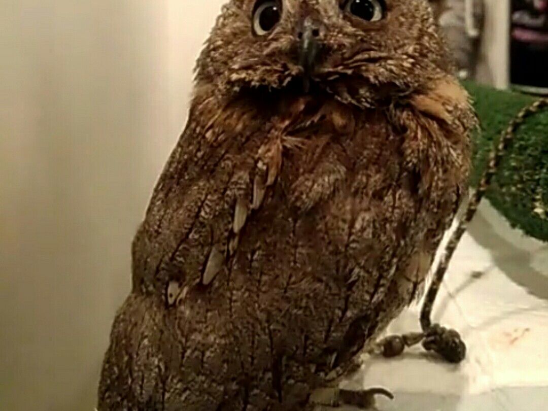 It was apparently the annual feather molting season, and there was an adorable owl that was quite bald.