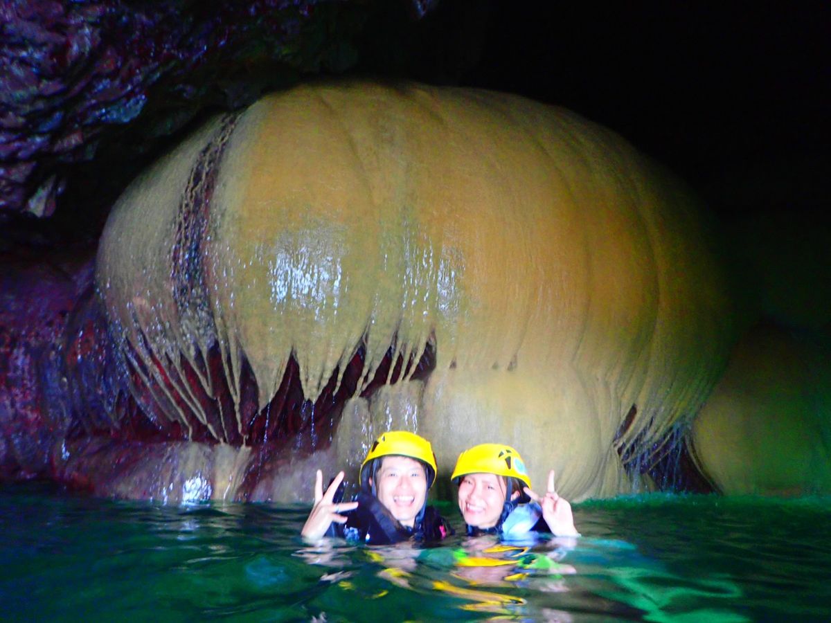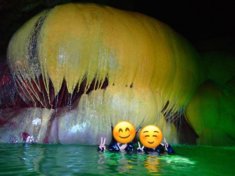 妻と2人で参加させて頂きました。午前中にパンプキン鍾乳洞、午後にシュノーケリング体験をしました。