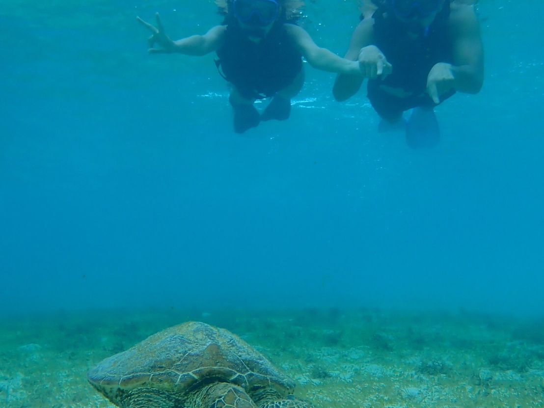 シュノーケリングは海亀のよくいる海岸で行いました。スタッフさんはとっても優しくて参加者をよく気にかけツアー中終始声をかけてくれてました。亀も何匹か見ることができました。スタッフさんがカメラを持っていて水中でも写真を撮って撮った写真を送ってくれます。