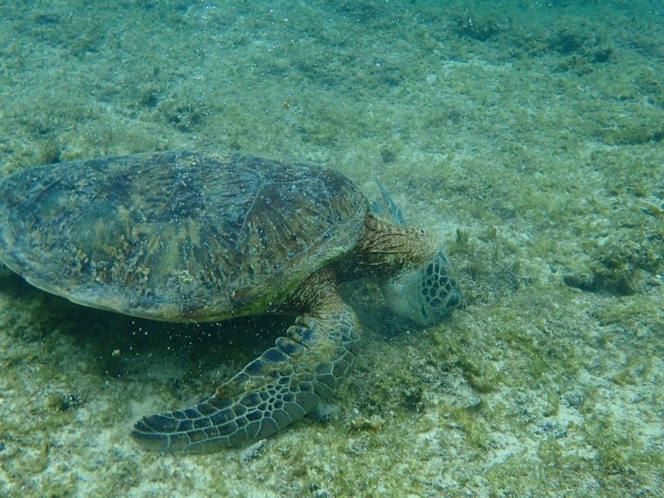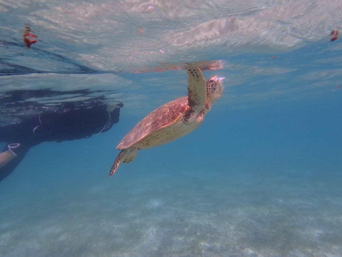 ウミガメシュノーケルでは2匹のカメを無事拝めました。