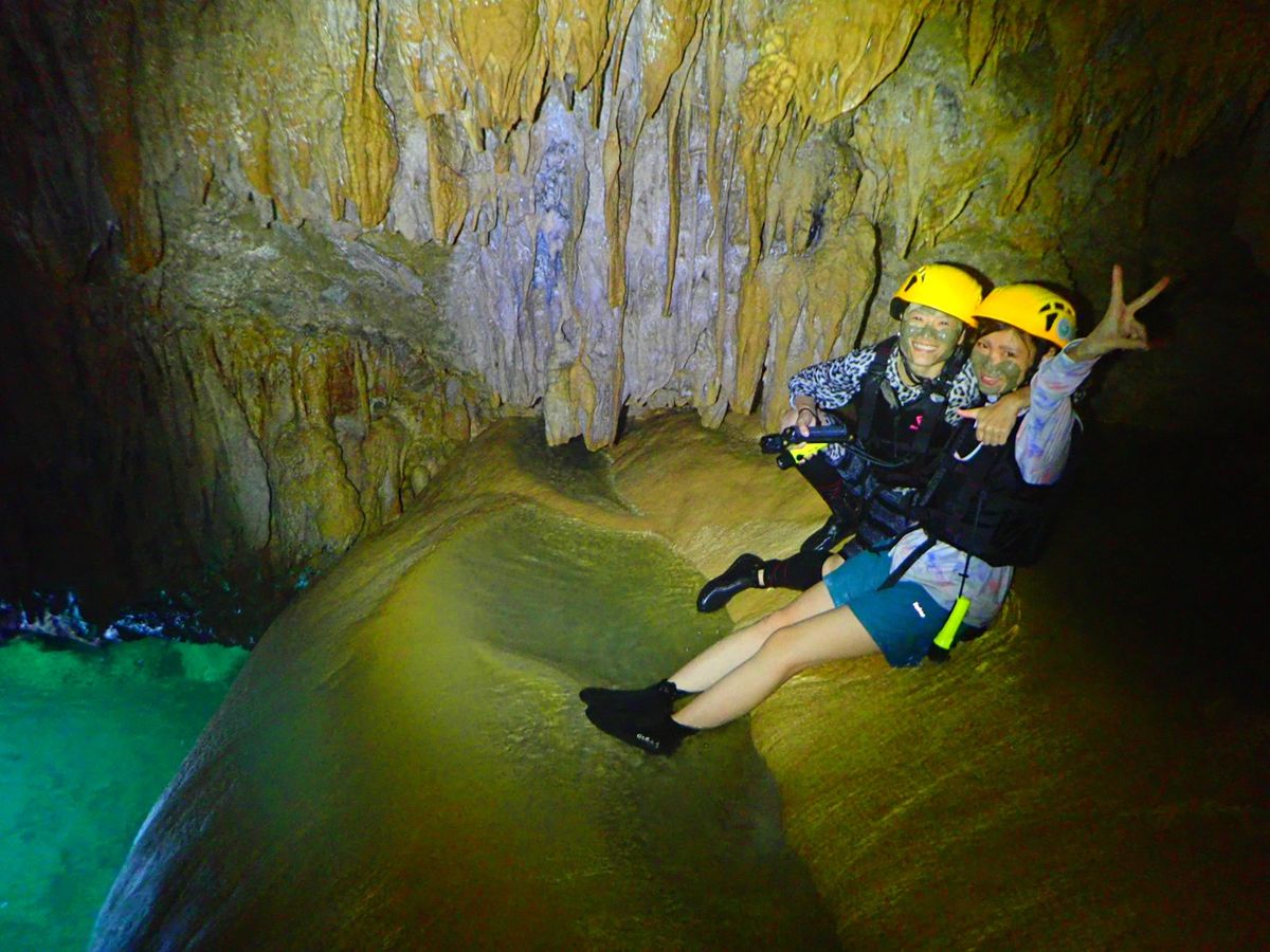 鍾乳洞に登ってどんどん洞窟内を進んでいきます。え?ここ登るの?こんなに先に進むの?予想以上にアドベンチャーで本当に冒険をしているようでした。パンプキン色の鍾乳洞やエメラルドグリーンの深い海、ミネラルいっぱいの泥パック。。。普通の鍾乳洞とは一味も二味も異なるので宮古島に来たチャレンジャーな方に特にお勧めです。ツアーガイドさんもとっても良い方でした、貴重な体験でした。来れてよかったです!ありがとうございました。