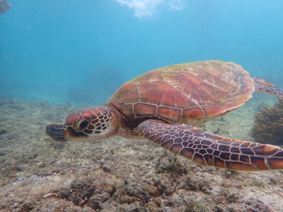 一方、海亀シュノーケリングでは綺麗な珊瑚や色鮮やかな魚をたくさんみることができた。海亀も足元ギリギリの位置に遭遇して貴重な体験をすることが出来ました。一生忘れない楽しい思い出になりました。ありがとうございました!