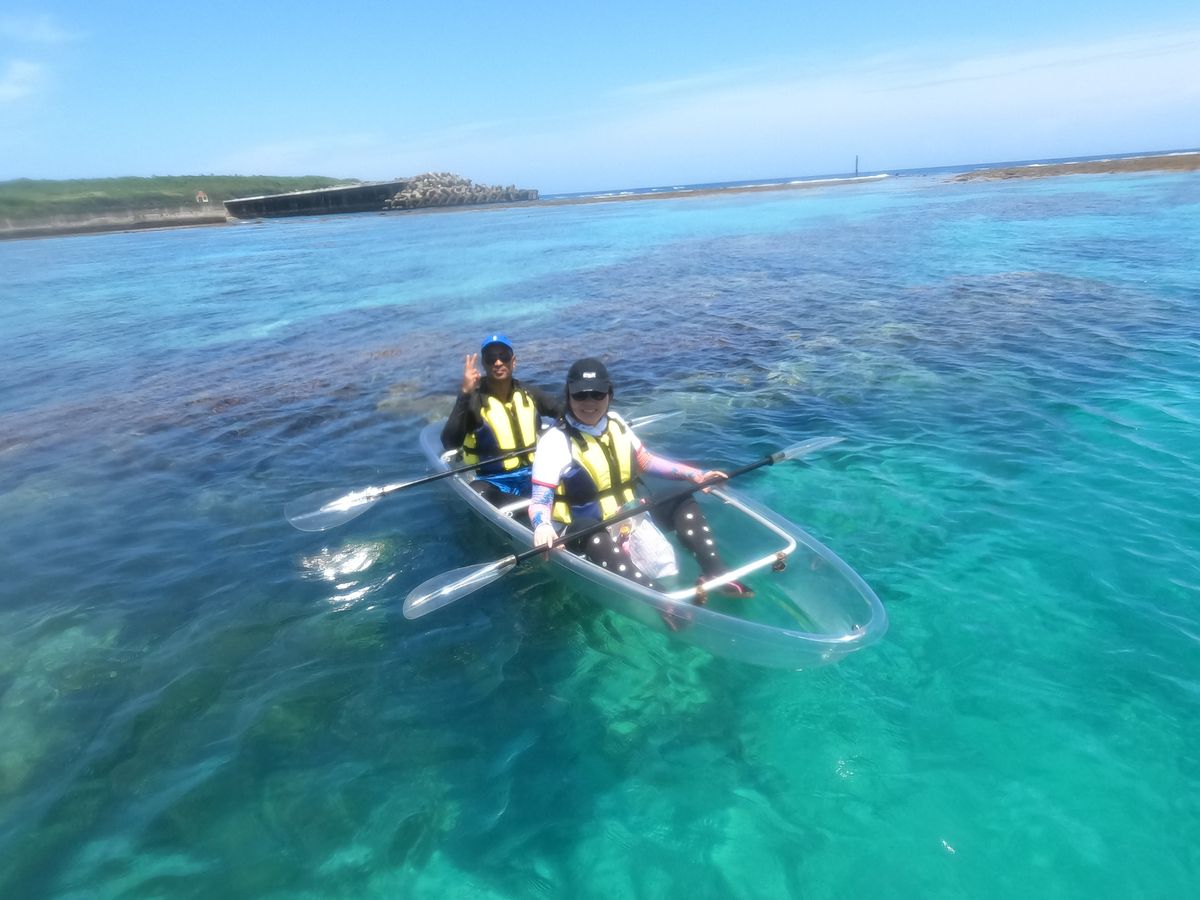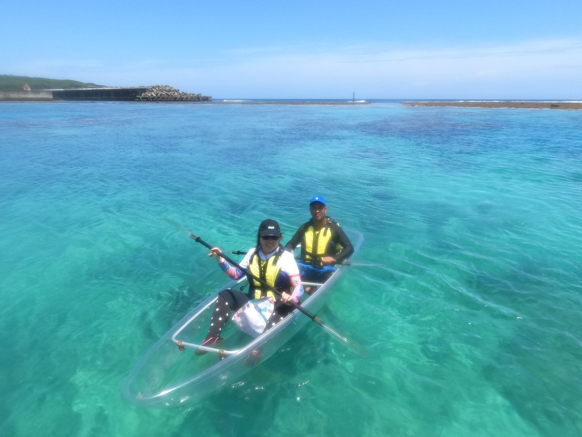My first time in Miyako Island. My husband and I came from Saitama Prefecture. My husband is from Bangladesh and was amazed by the beautiful sea of Miyako Island! While snorkeling at the beach is great, we wanted to try something we had never done before, so we signed up for this clear kayak experience.