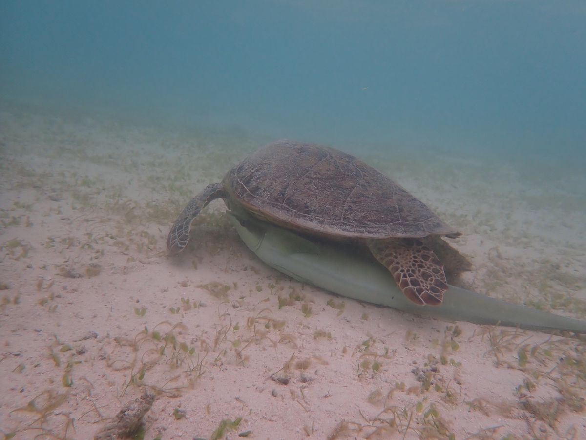 亀さんシュノーケルでは3匹の亀、その亀に張り付いて泳ぐ小判鮫も見れました!