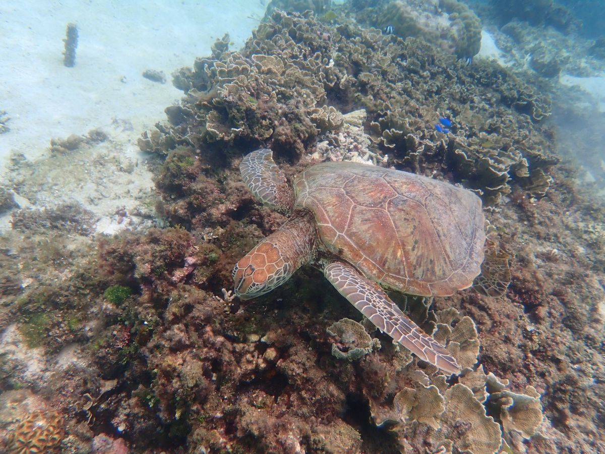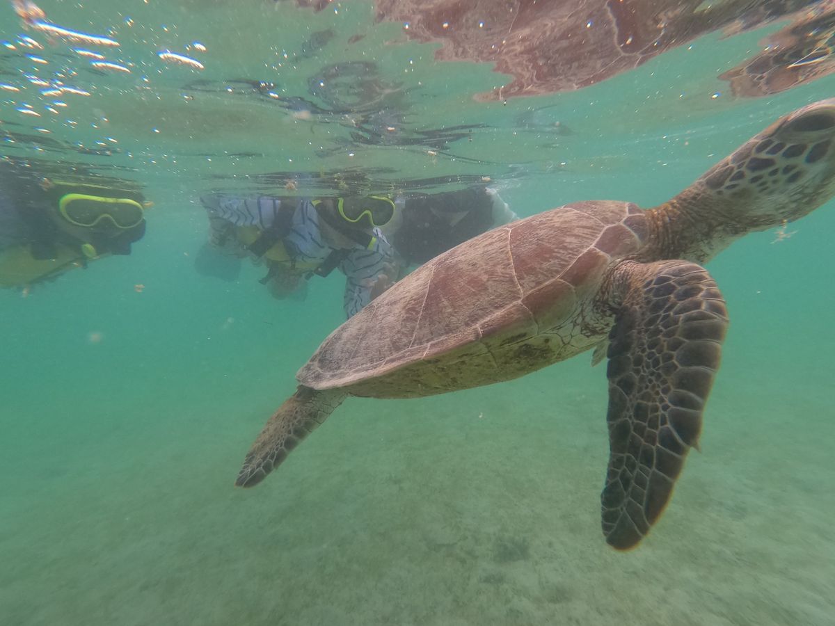During the turtle snorkeling, we saw three turtles and a remora swimming closely with them! The guide was cute and friendly, and took lots of photos for us. We were able to see not only the turtles but also plenty of coral and small fish.
