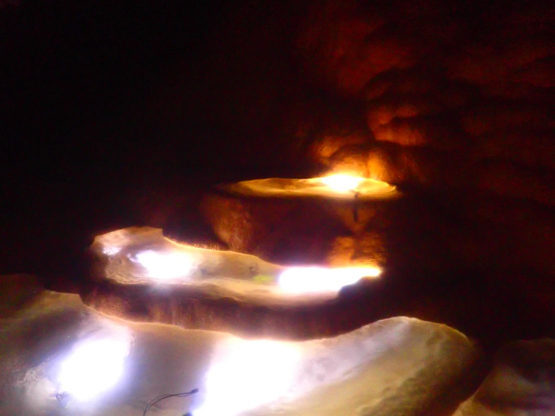 中に入ると大きなパンプキン鍾乳洞が目に入り、上まではスタッフのサポートで上がることができ、奥へ奥へと進みます。