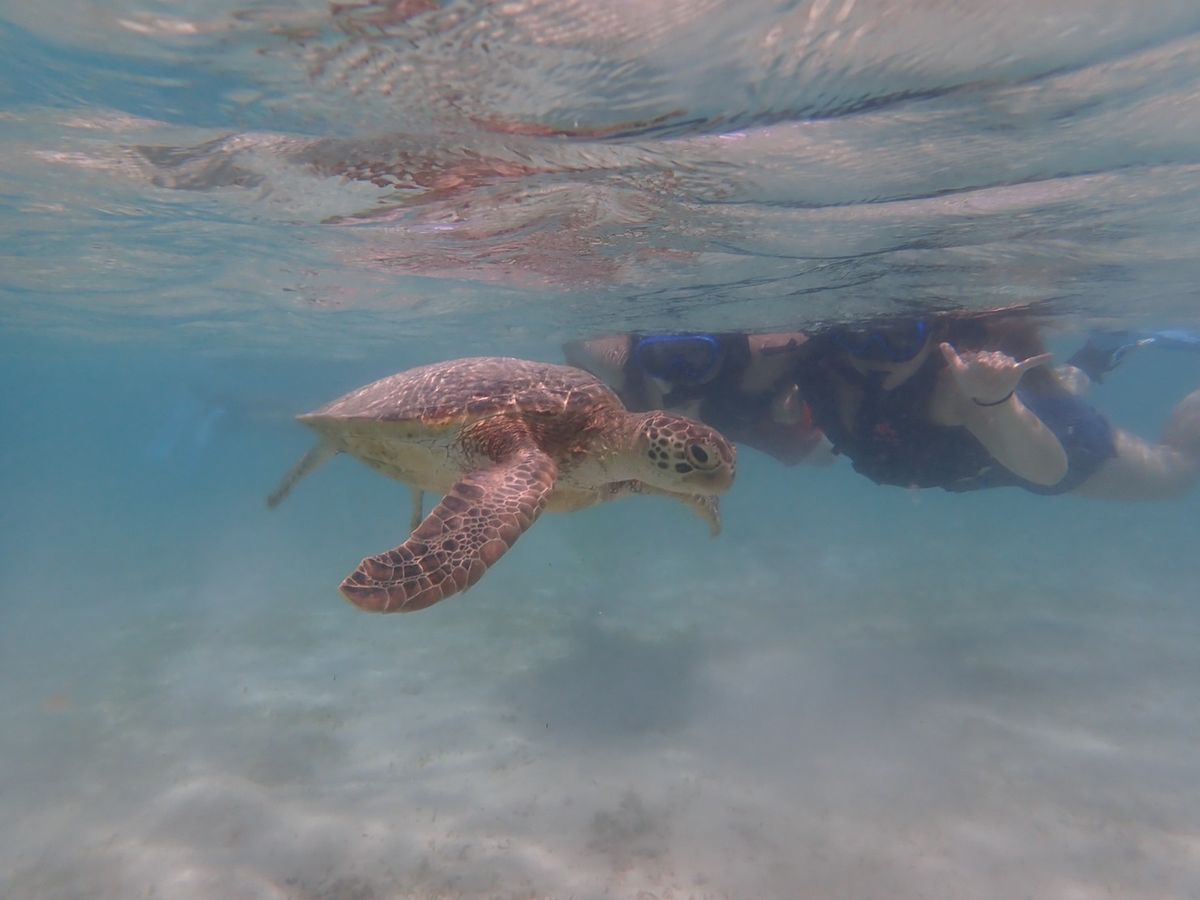 I participated in a tour that included snorkeling and the Pumpkin Cave. When I encountered a sea turtle shortly after starting to snorkel, I was so moved that I couldn't find the words to express it. They also took us to various spots where we could see other fish, so I think it's highly recommended for those who want to enjoy snorkeling.