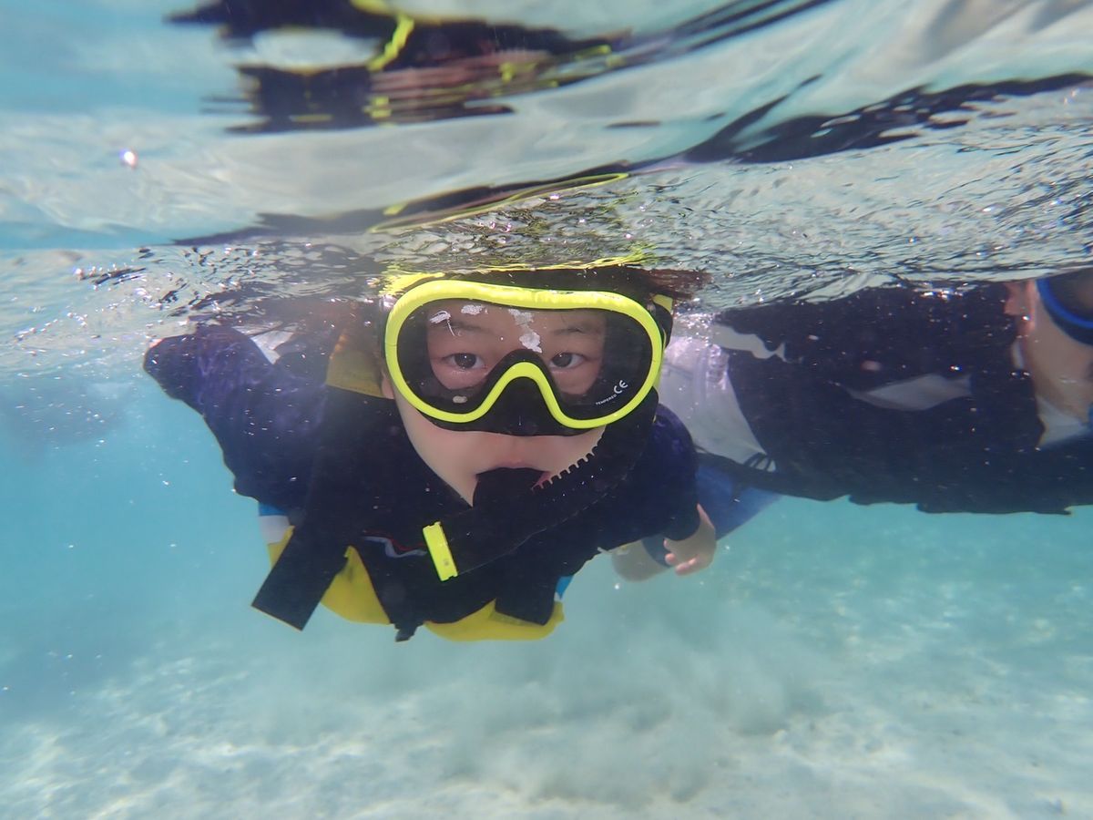 During this trip, I was pregnant and couldn't go into the sea much, but I had a great time seeing various fish without getting in! While it’s not a very physically demanding activity, the sun is quite strong, so I recommend that elderly people and children bring bottled drinks and stay hydrated frequently.
