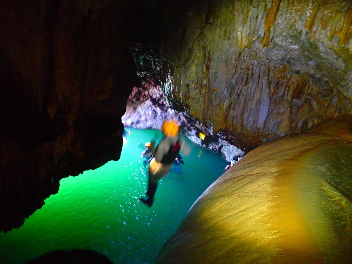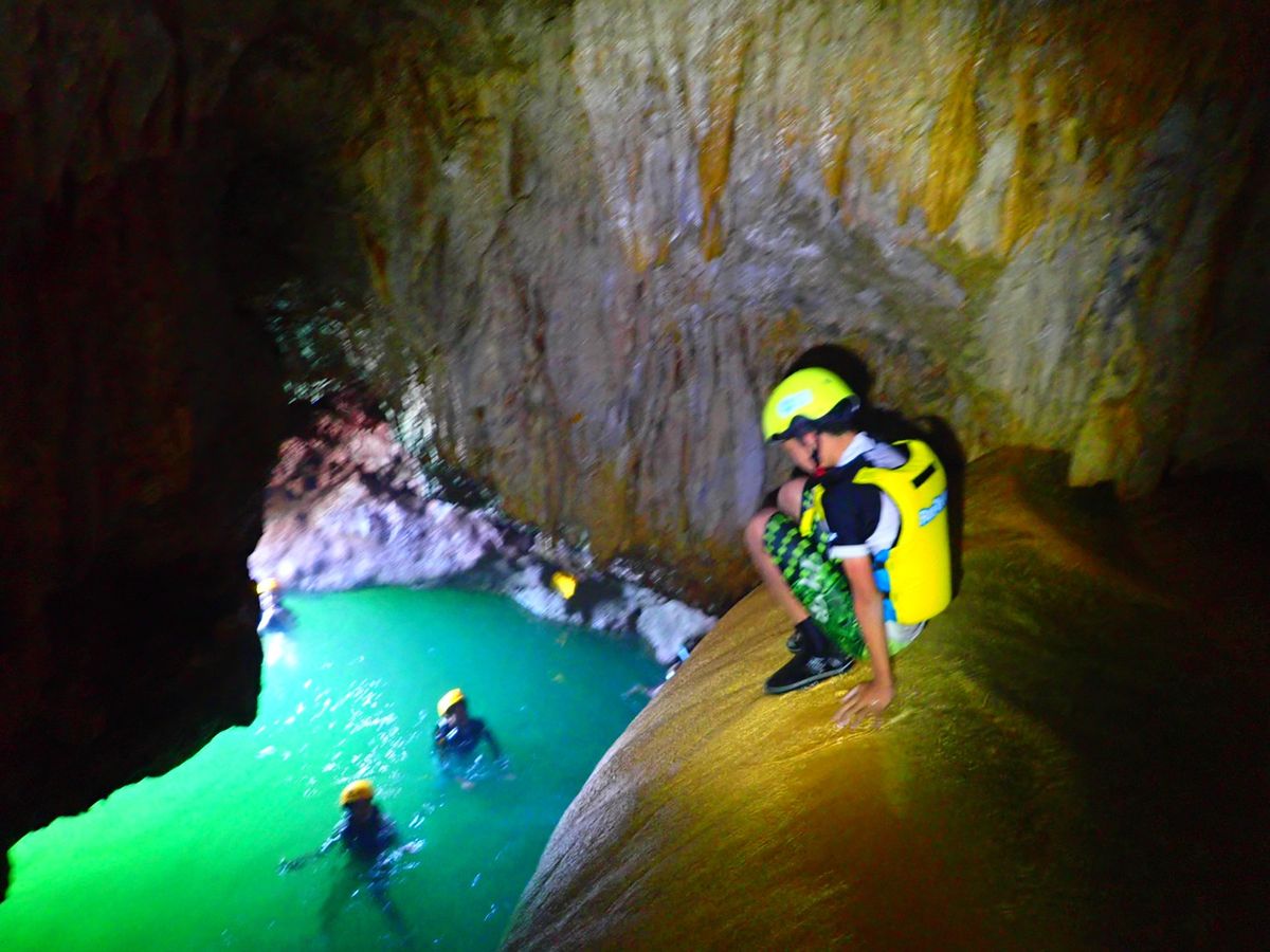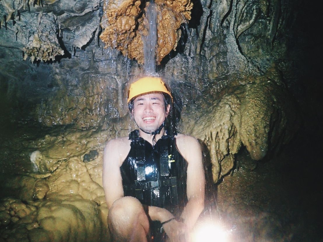 鍾乳洞の中もいろいろ探索できて、最後には海の中へダイブです。鍾乳洞ツアーでも、沢山写真を撮ってくれました。