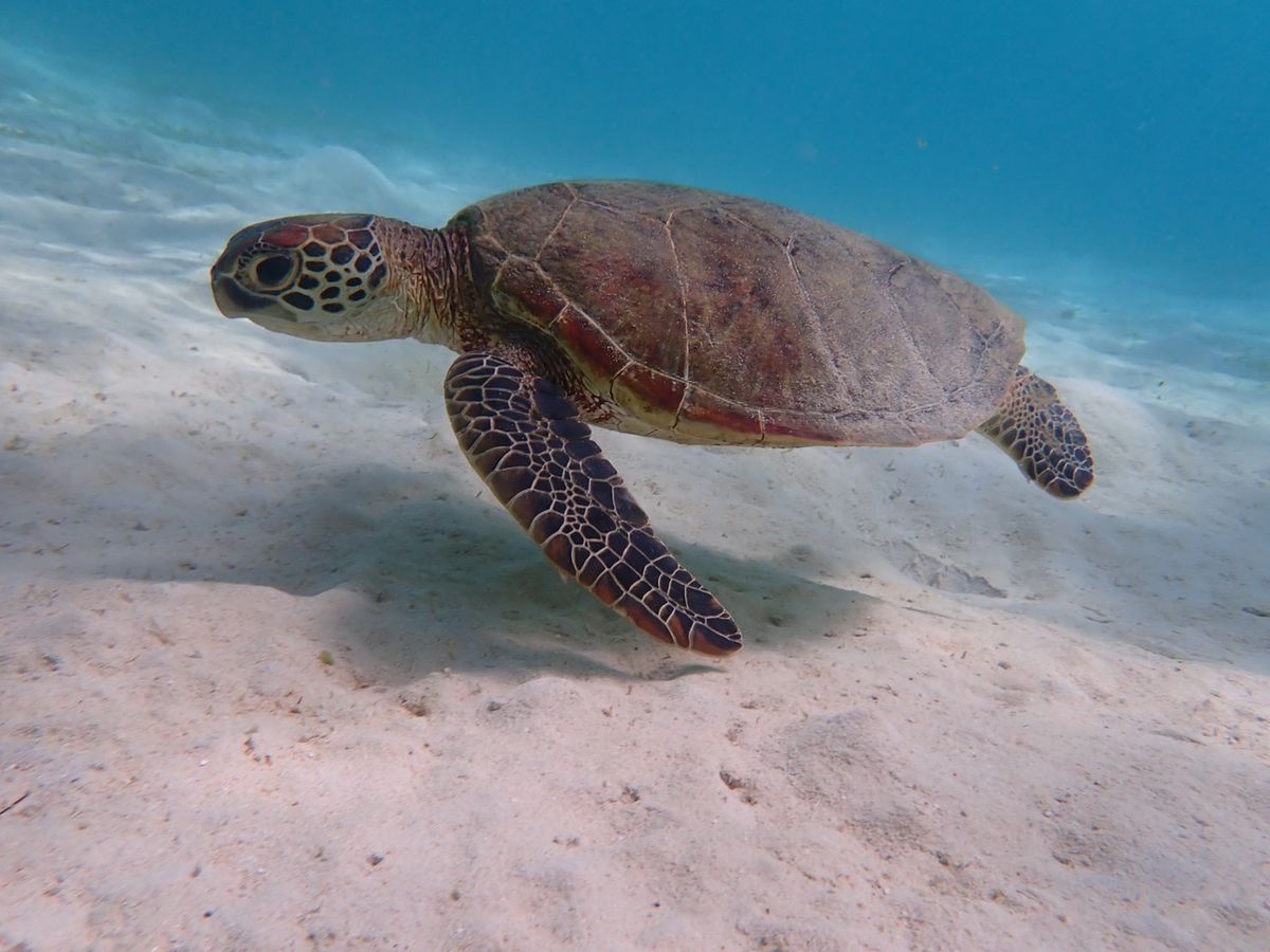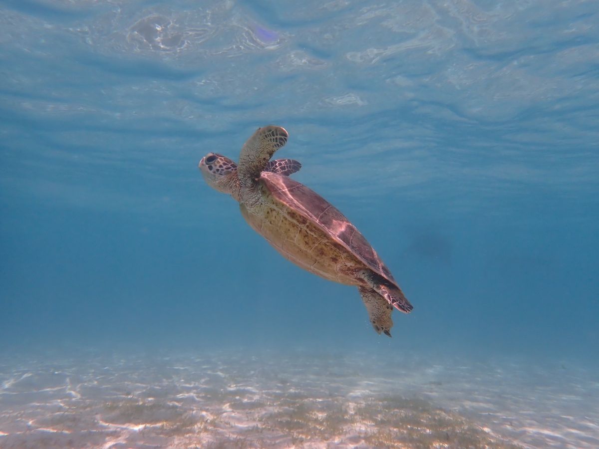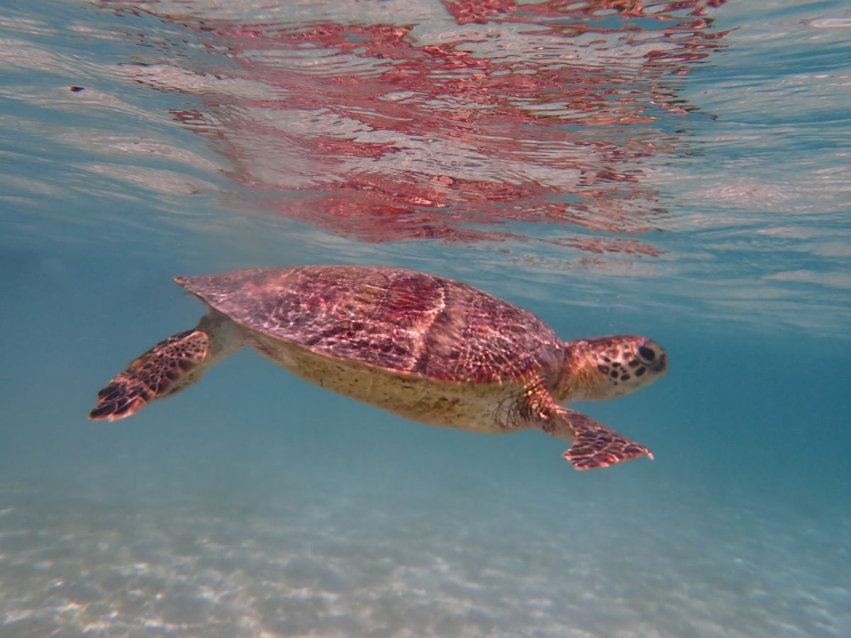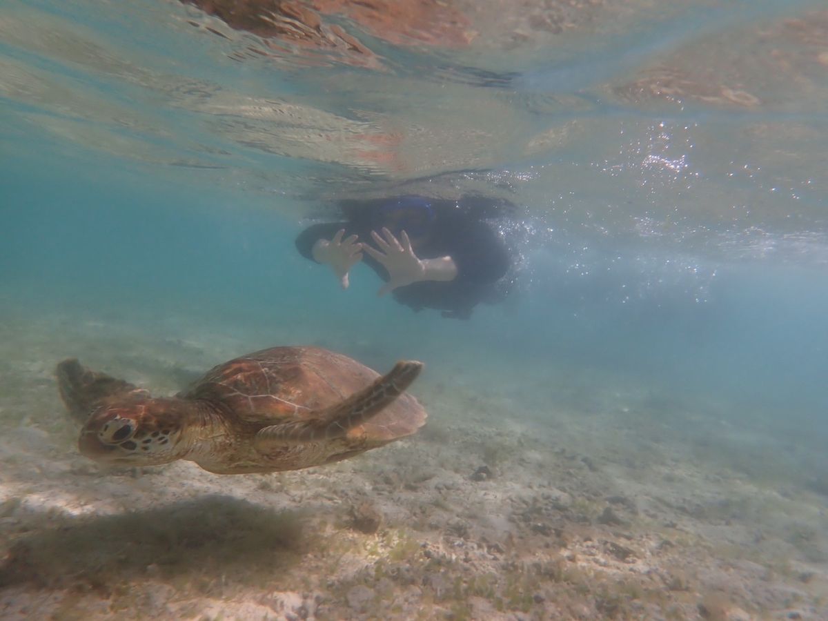 シュノーケルをして間もなくウミガメに会えた時は、本当に会えるんだと、言葉にならないほど、感動しました。