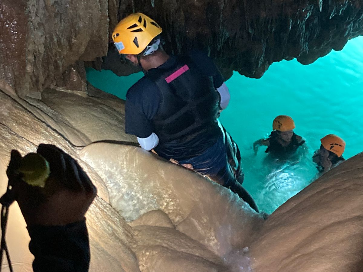 After the turtles, we headed to the Pumpkin Cave. The walk to the entrance of the cave was a bit challenging, but when we arrived, I was filled with excitement. Inside the cave, we could explore various areas, and at the end, we dove into the sea. The cave tour also included many photo opportunities.