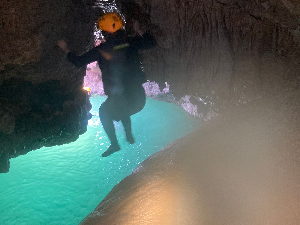 At the end, we jumped into the sea from three meters above the water at the Pumpkin Cave, which felt amazing. If jumping is not possible, you can also walk down.