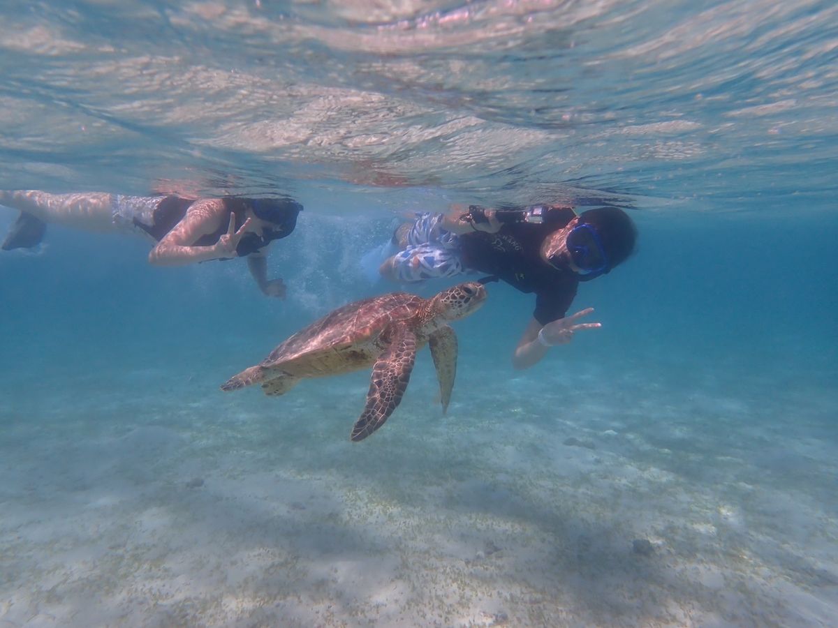 ウミガメシュノーケリングツアー、美人で笑顔が素敵なガイドさんにあたり、緊張していたシュノーケリングも時間が経つにつれてワクワクに変わりました!