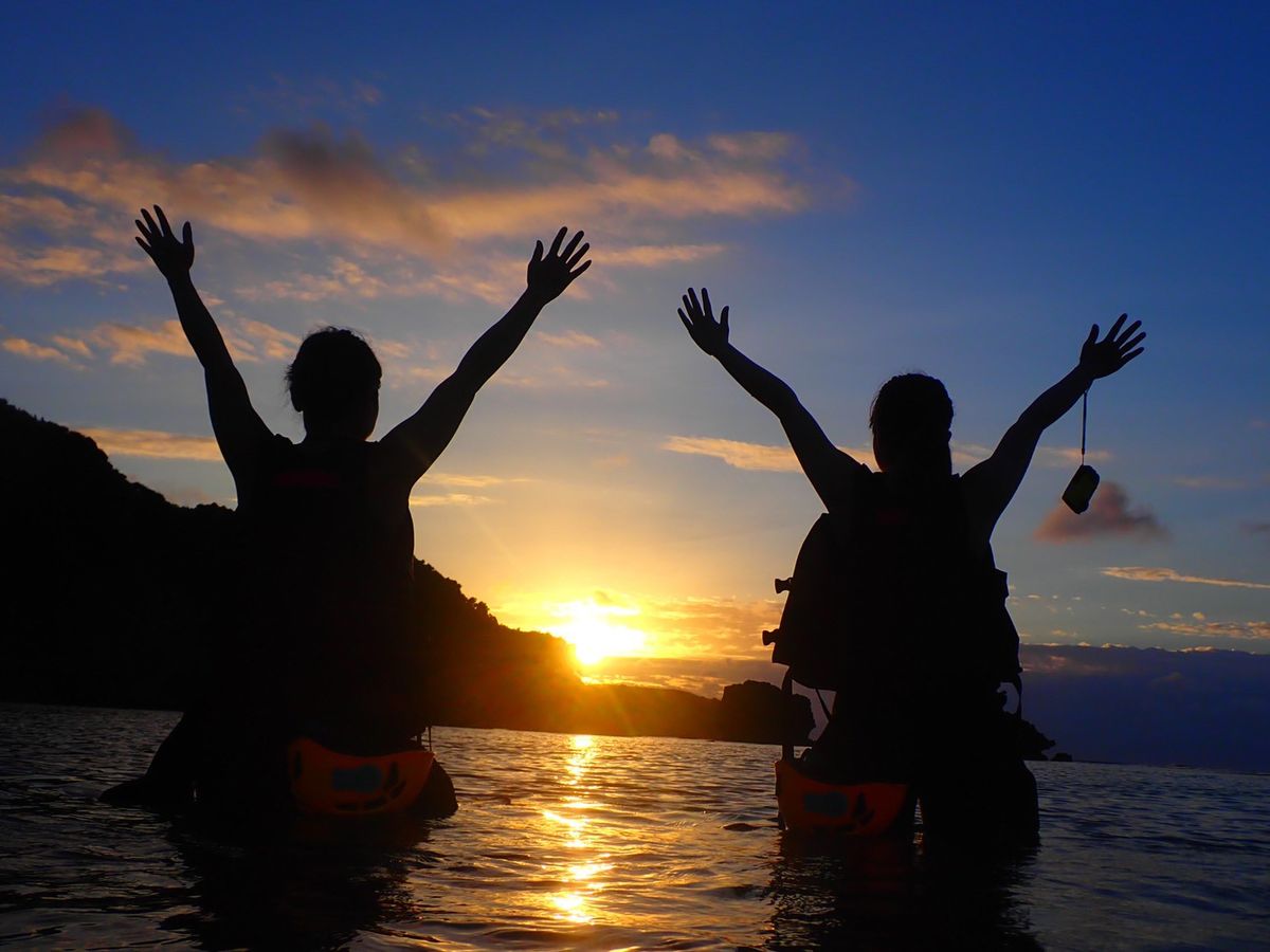 I had some experience with regular kayaking, but this was my first time with sunset kayaking. I was very satisfied to see the perfectly round sun clearly at the horizon. The staff constantly checked for safety, and I was truly grateful for that. The optional drone photography (1,000 yen per person) is definitely something you should include; the stunning results will make your memories even more wonderful!