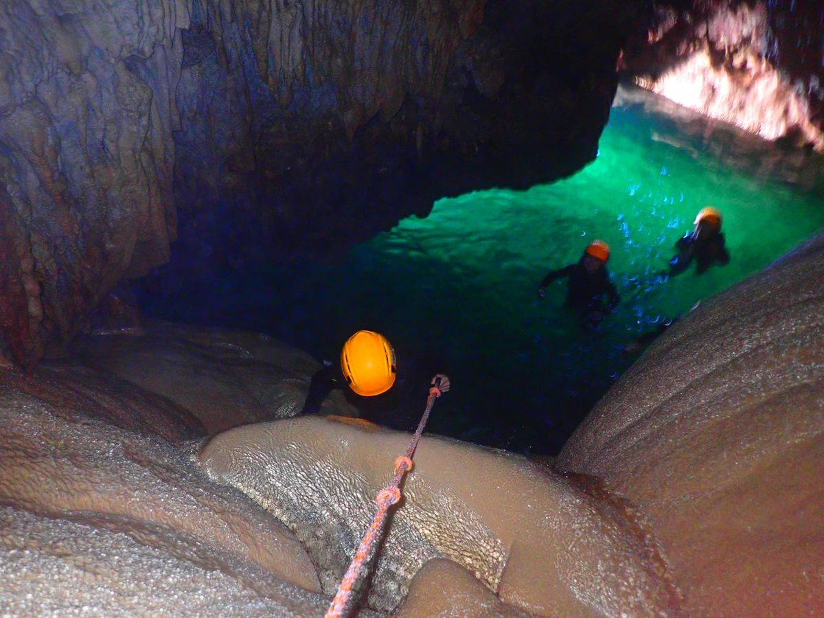 パンプキン鍾乳洞に登る際、人によっては難しい場面がある旨をご説明し、ご了承頂いたうえでツアーを開催しております。