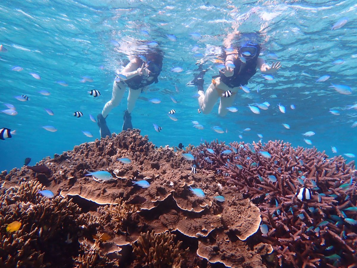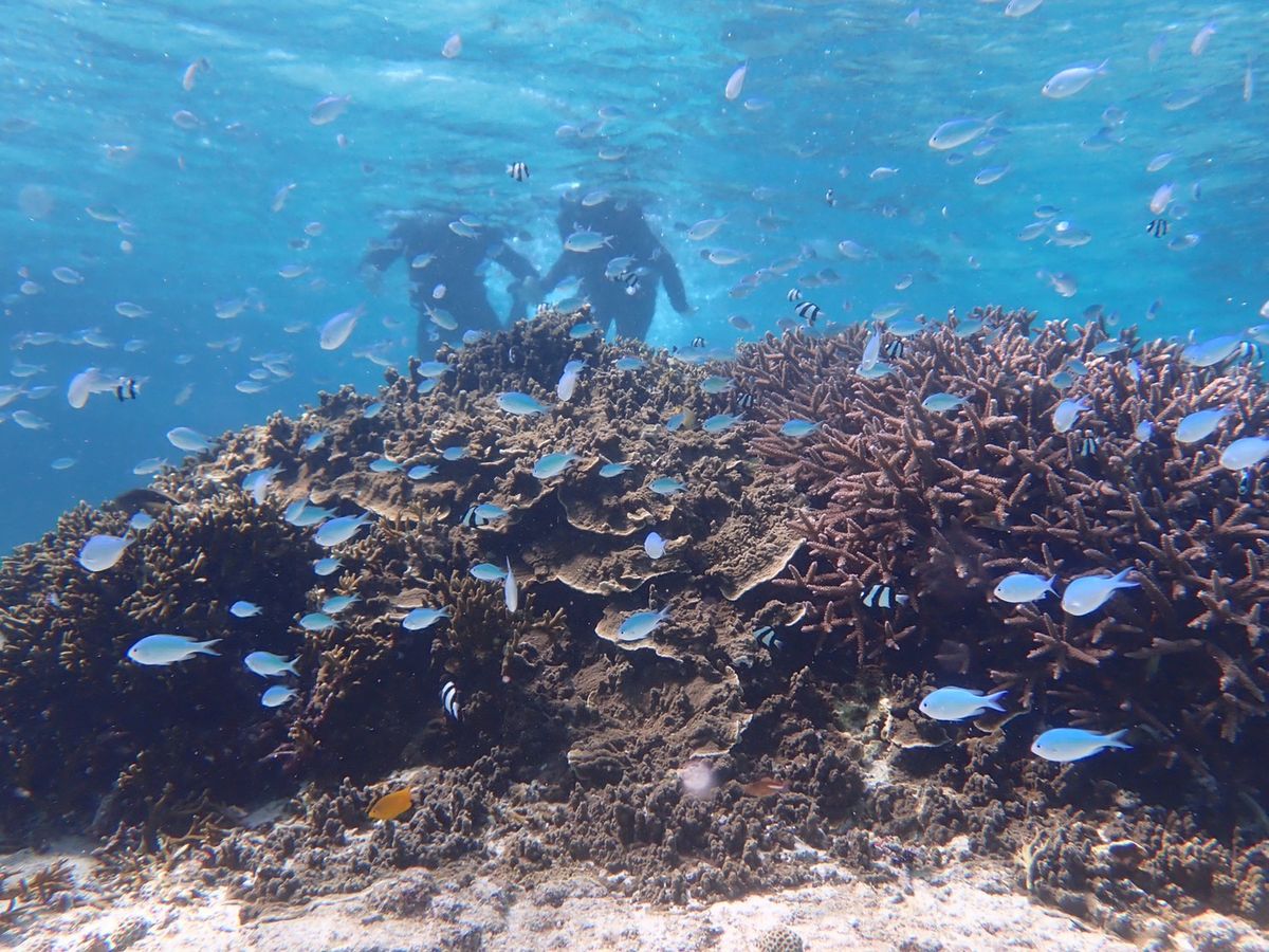 I was a bit worried because our child is a little restless, but the guide was really caring and friendly. They bonded over discussions about "Demon Slayer," played in the light rain with slightly higher waves (they provided floatation devices, so we felt completely safe), and our child was in a great mood, even getting carried around. We were able to see sea turtles, which were very cute, and not just sea turtles, but many different types of fish as well. It was reassuring that we didn't swim in very deep areas.