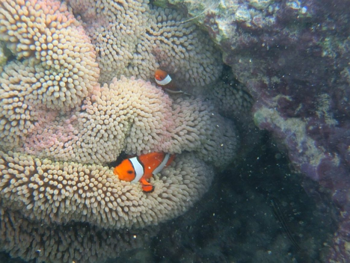 シュノーケルでは、いろいろな魚を見る事ができ、クマノミ親子にも会えました!