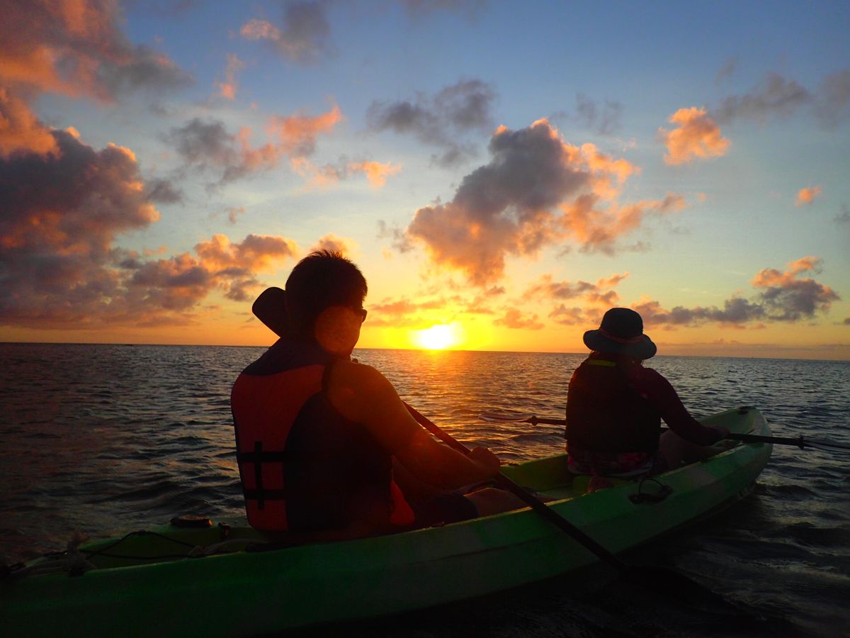午後便で沖縄到着後、何かできるアクティビティがないかと探してたどりついたサンセットカヤック。お天気にも恵まれてしっかり夕日を拝むことができました。