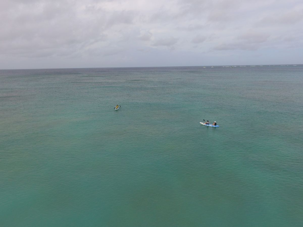 シーカヤックは透明度の高い海を貸し切り状態で、ドローンでその様子をしっかり撮影していただき、まるでテレビの旅行番組の主役になった気分でした。