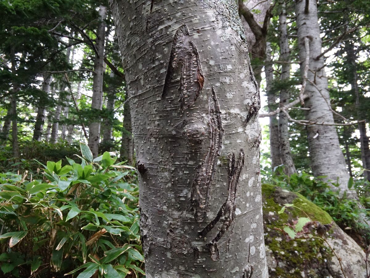 知床五湖すべてを回るツアーが多い中、二湖をコンパクトに回るツアーを見つけて参加しました。当日は2組4名でした。双眼鏡の使い方を教えてもらい、フィールドハウスでレクチャーを聞いた後、出発です。ツアーはゆっくりしたスピードです。時々止まり、クマが木につけた爪痕や、足跡、糞などを説明してくれます。これらはガイドに説明してもらわなければ見つけることはできないでしょう。また、クマに遭遇した時の対処についてもガイドがいると安心です。幸いにもクマには遭遇しませんでしたが、地上遊歩道の上からシカを見ることができました。