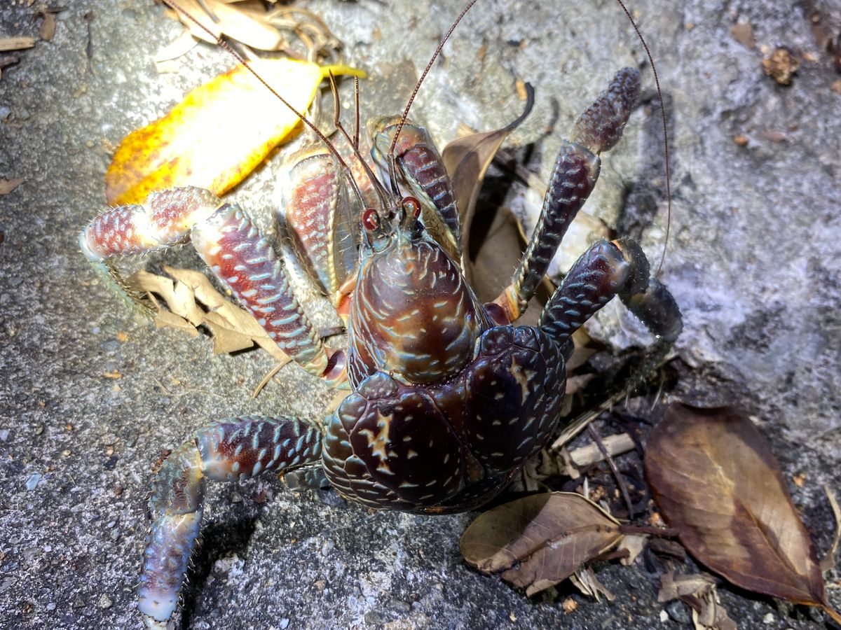 ツアーのガイドさんが、島固有の生物に詳しく、カエルや日本最大の蜘蛛、天然記念物の巻貝、ミノムシ、目的だったヤシガニにも会えて、生き物好きには、とても楽しい夜のツアーとなりました!