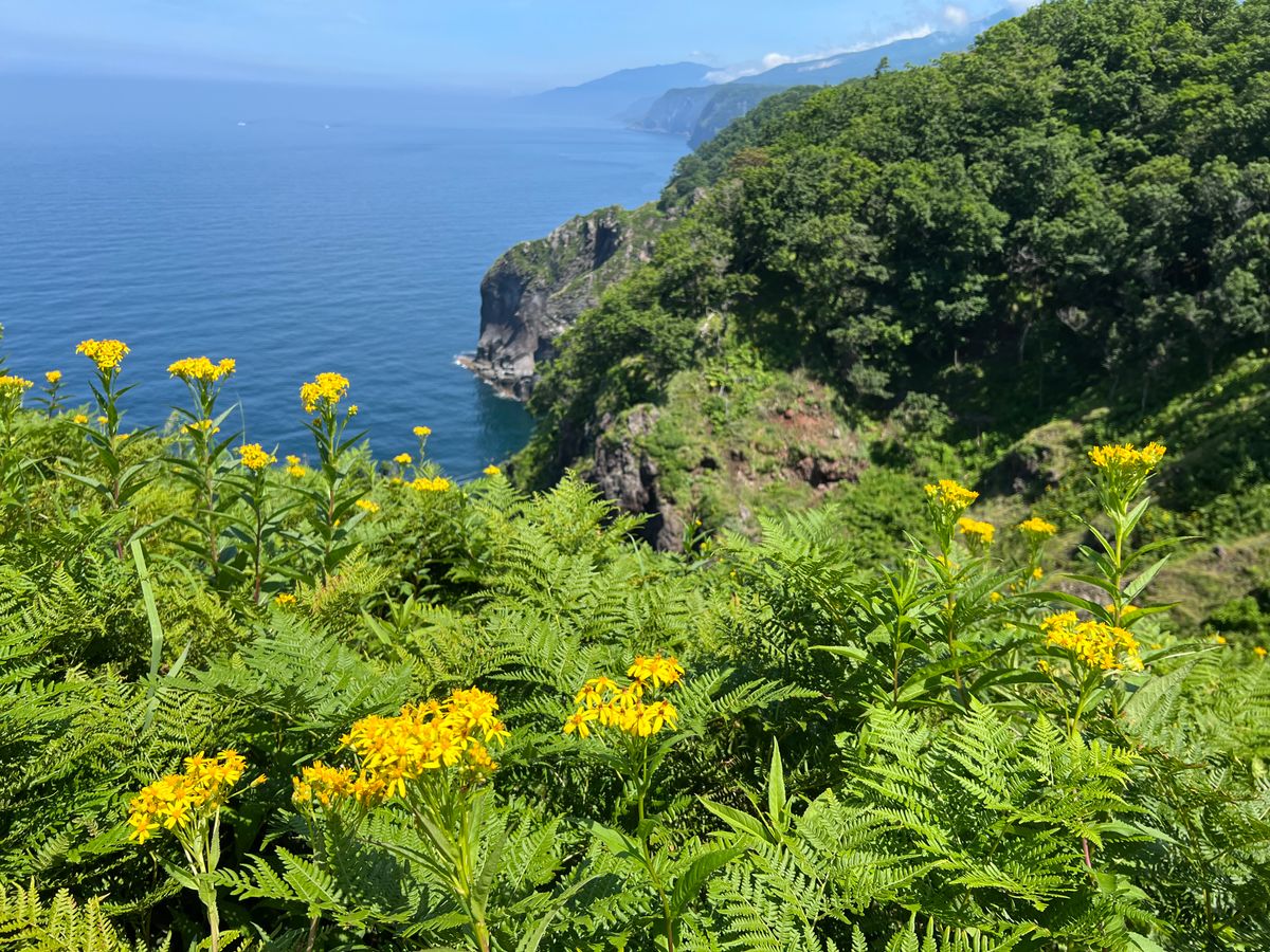 I went on a tour of the Shiretoko Five Lakes, but due to bear sightings, we switched to a primeval forest tour. This turned out to be the best experience! We pushed through grass that was up to our waists and entered the forest, and when we emerged into a wide-open field, the view was breathtaking! Cliffs, the sea, and blue skies with clouds. We visited three different cliffs.