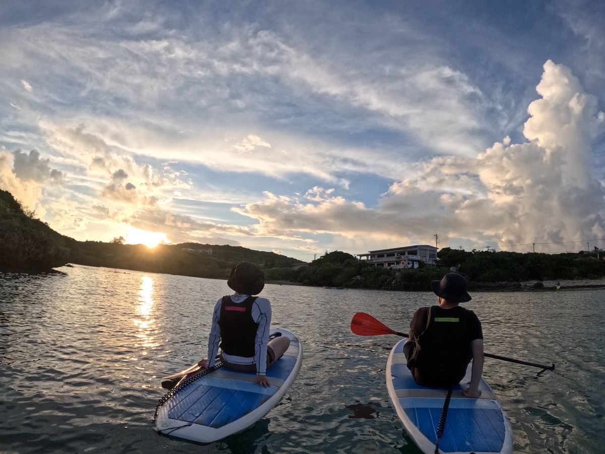 I experienced SUP for the first time. I decided to challenge myself with sunset SUP. I was worried about whether I could do it well, but they provided careful instruction, and I was able to stand and paddle successfully. The weather was uncertain, but I was glad to be able to do SUP while watching the beautiful sunset!