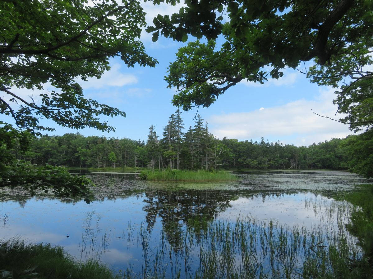 雨が心配されましたが運よく晴れました。またヒグマ出没による遊歩道閉鎖ともならなかったため、知床五湖の大ループをすべて歩いてくることができました。知床の大自然の森の中を歩く体験は格別です。歩きながら時々小休止してヒグマはじめ鳥やエゾシカなどについて、また植物について説明を伺いました。美しい景色だけでなく、ヒグマの糞や爪痕を観察したり、遠くにカモやエゾシカを見たり、実り多い時間でした。