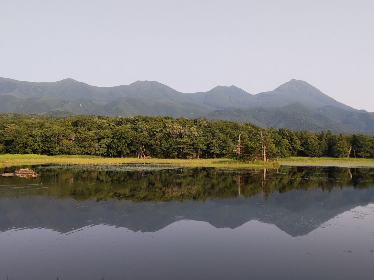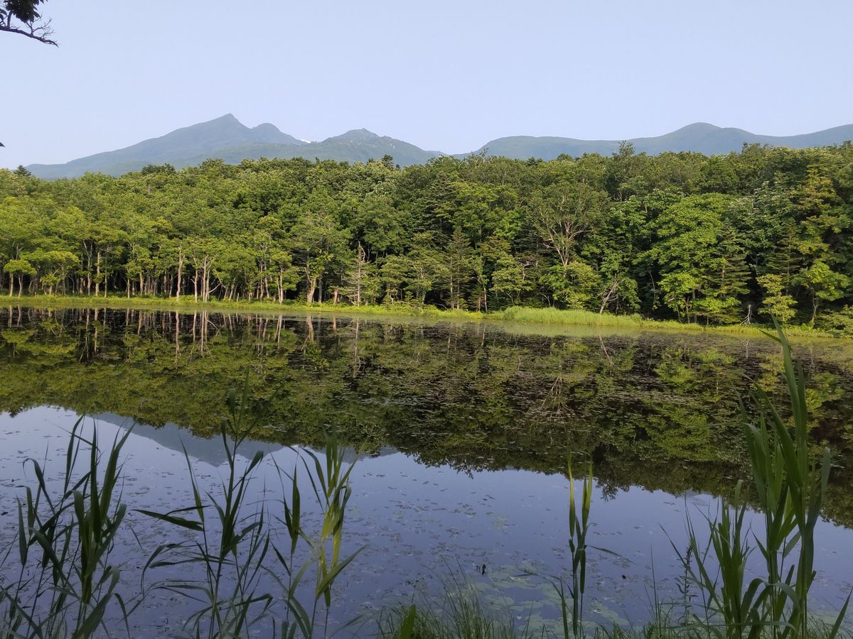 Although there were concerns about rain, fortunately, it cleared up. Additionally, there was no closure of the walking paths due to bear sightings, so I was able to walk the entire loop of the Shiretoko Five Lakes. The experience of walking through the magnificent forests of Shiretoko is exceptional. While walking, I took occasional breaks to learn about bears, birds, and Ezo deer, as well as various plants. It was a fruitful time, not only enjoying the beautiful scenery but also observing bear droppings and claw marks, and spotting ducks and Ezo deer in the distance.