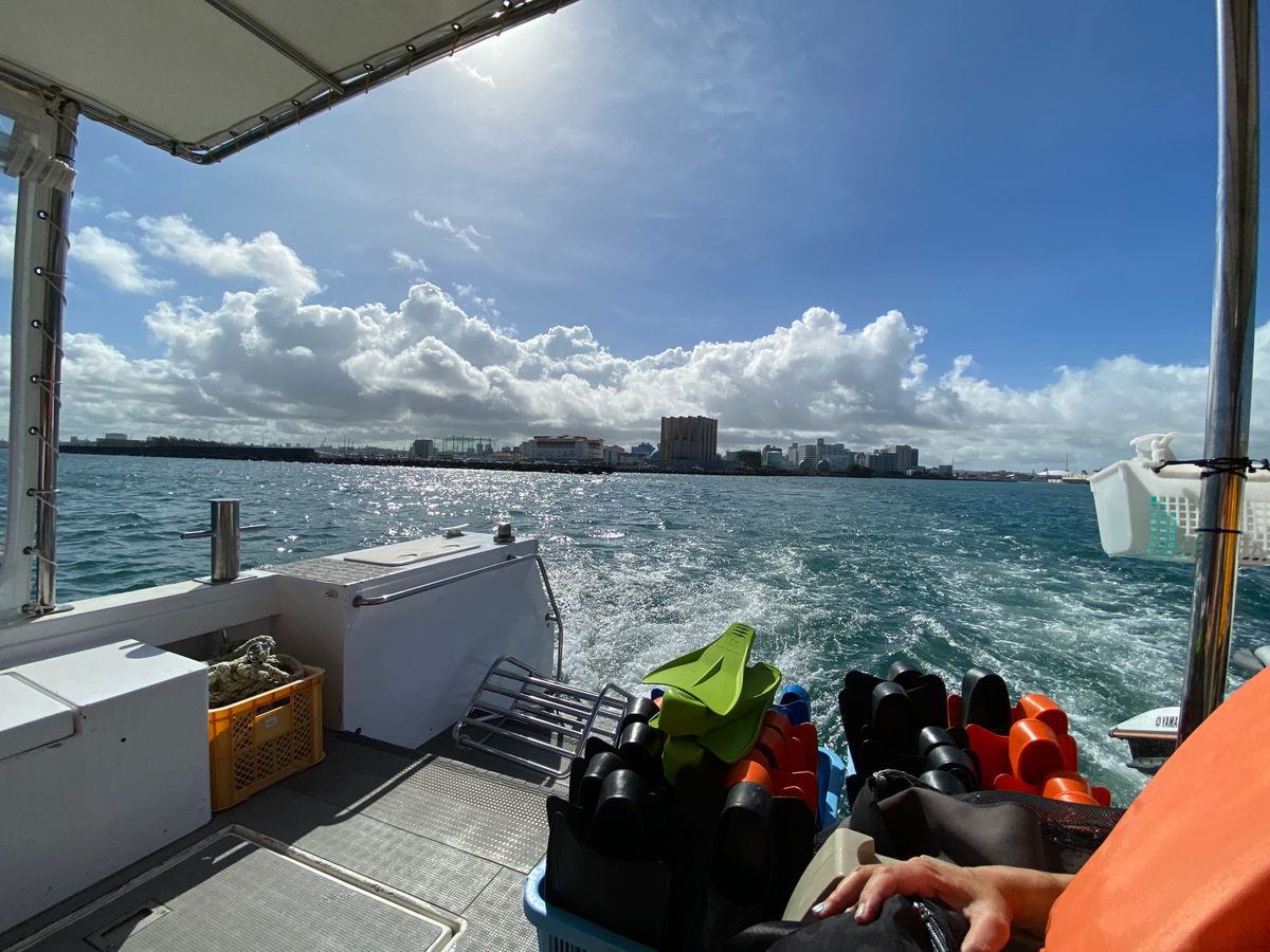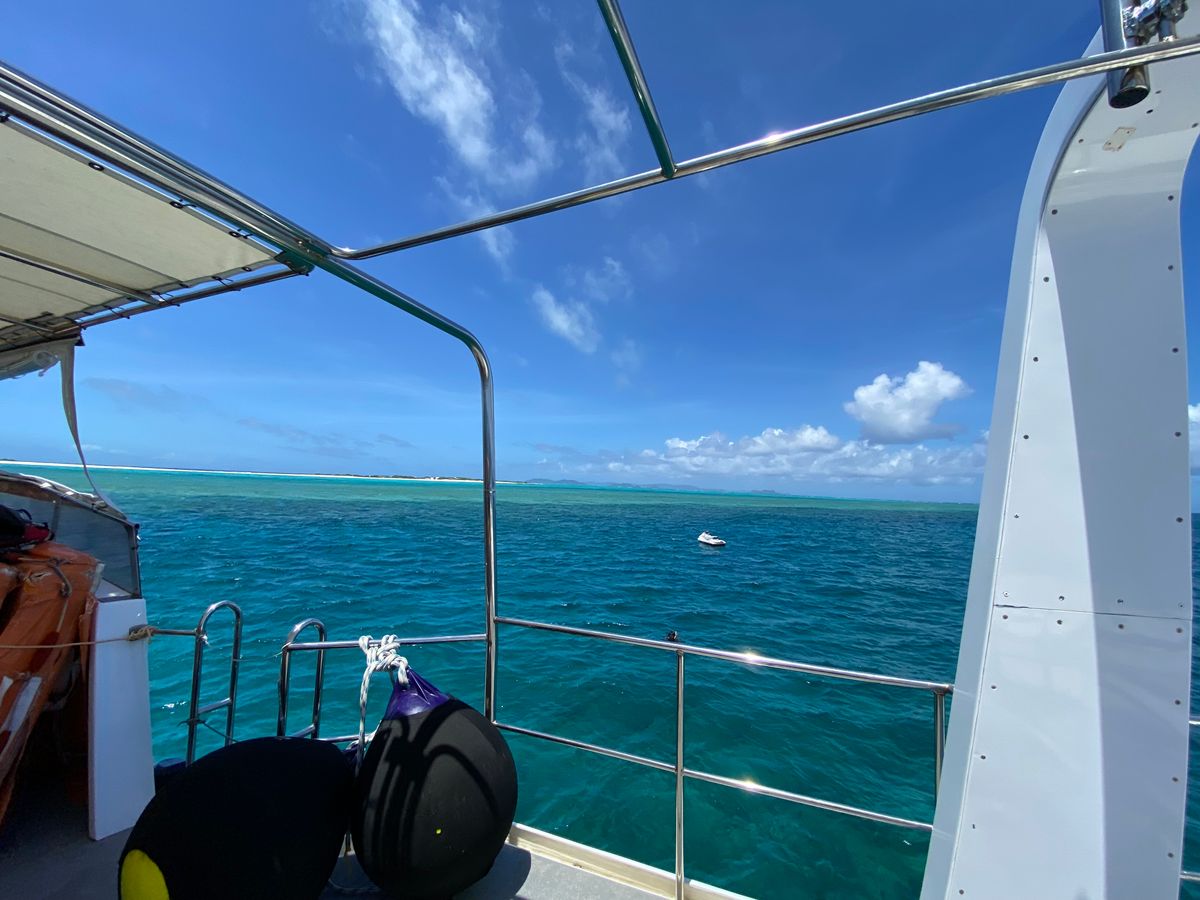 暑かった日であるが海風が有り、熱帯魚は船底で見えるし楽しかった時間です。もう少し沖まで出たい気持ちでした。