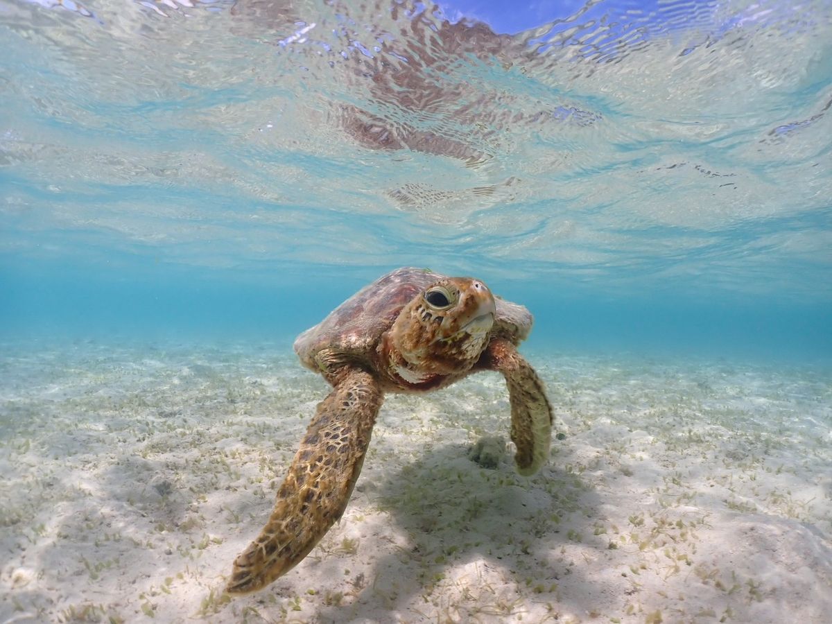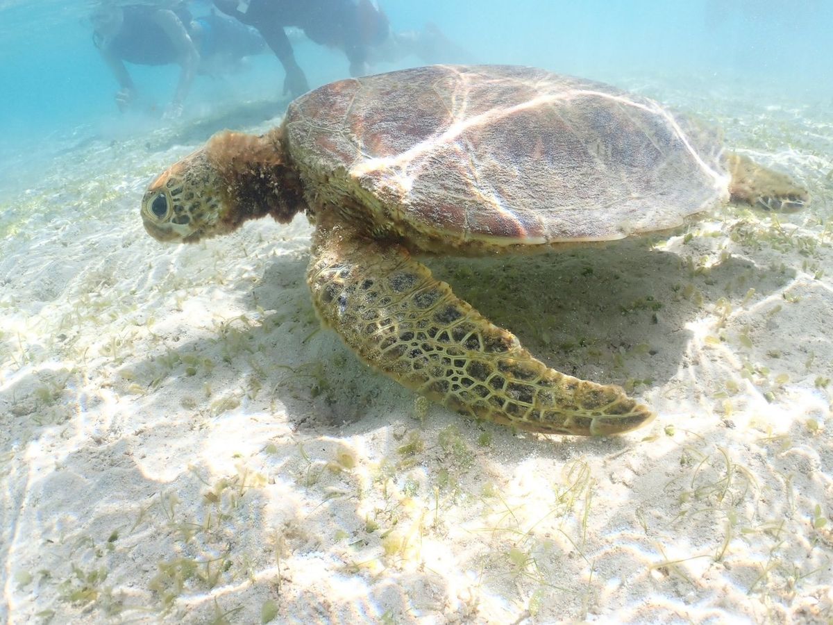 ウミガメを探すのに沖へ出たり、時間がかかるのかと思っていましたが、浅瀬に普通に(笑)いて、普通に泳いでいて、普通に海藻を食べていて、近くに行っても全然逃げないし、こんなに近くにいられるなんて!想像以上でした。