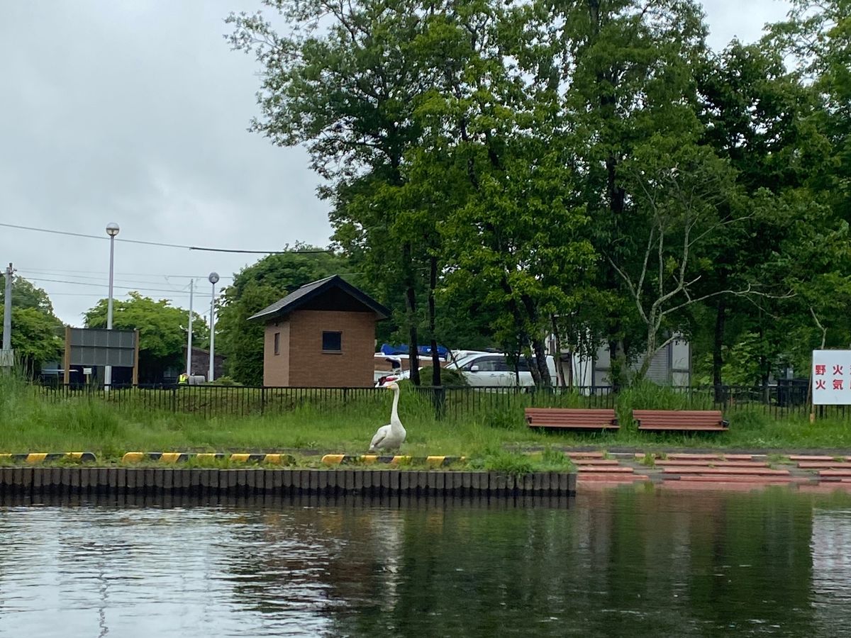 途中白鳥にも遭遇し、鳥の声を聞きながらの楽しいカヌーコースでした。
