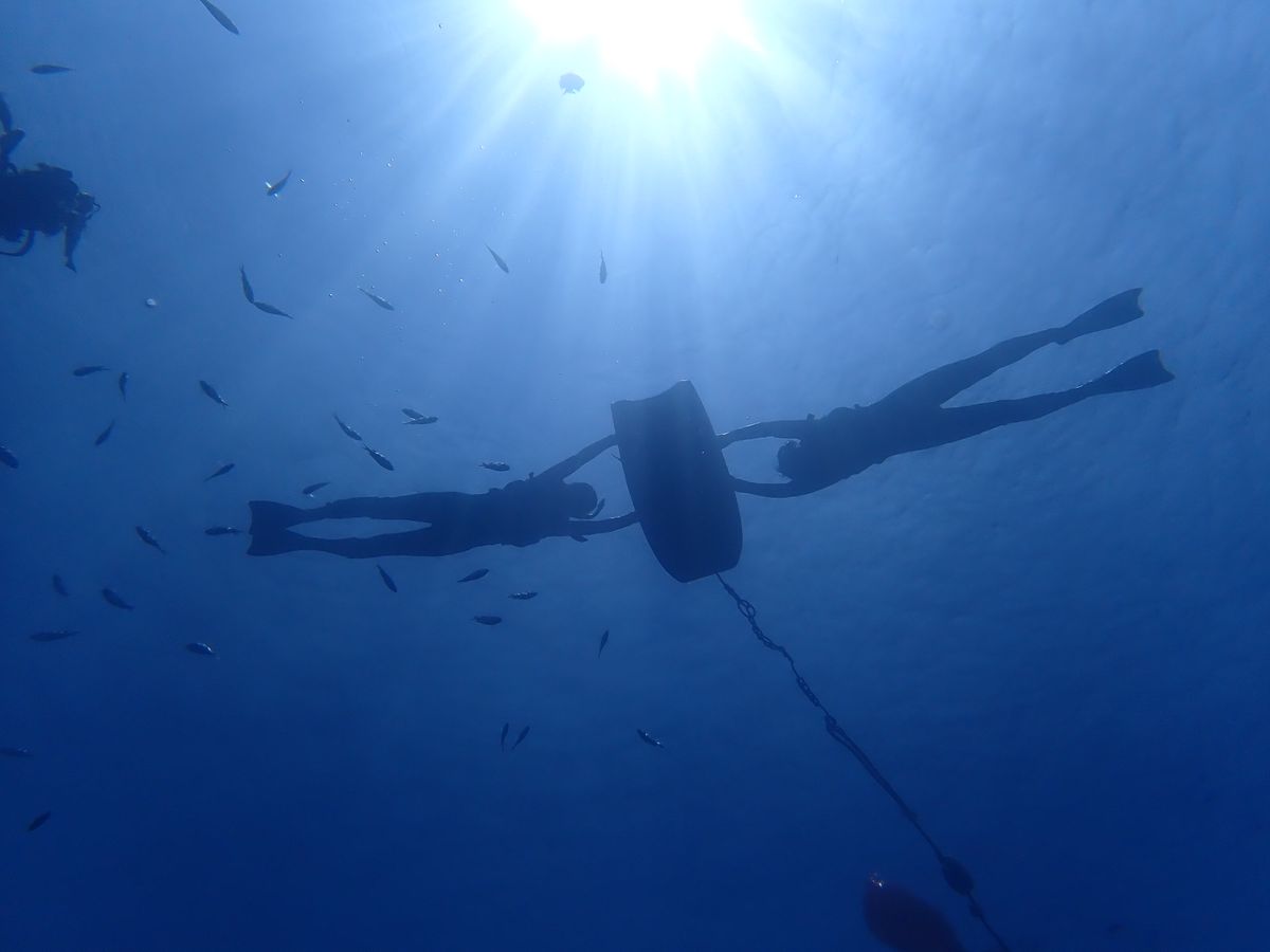 参加者が55名程で大人数のため、シュノーケル時魚より人のほうが多い位で何度も足のヒレで頭や身体にあたられてしまいました。