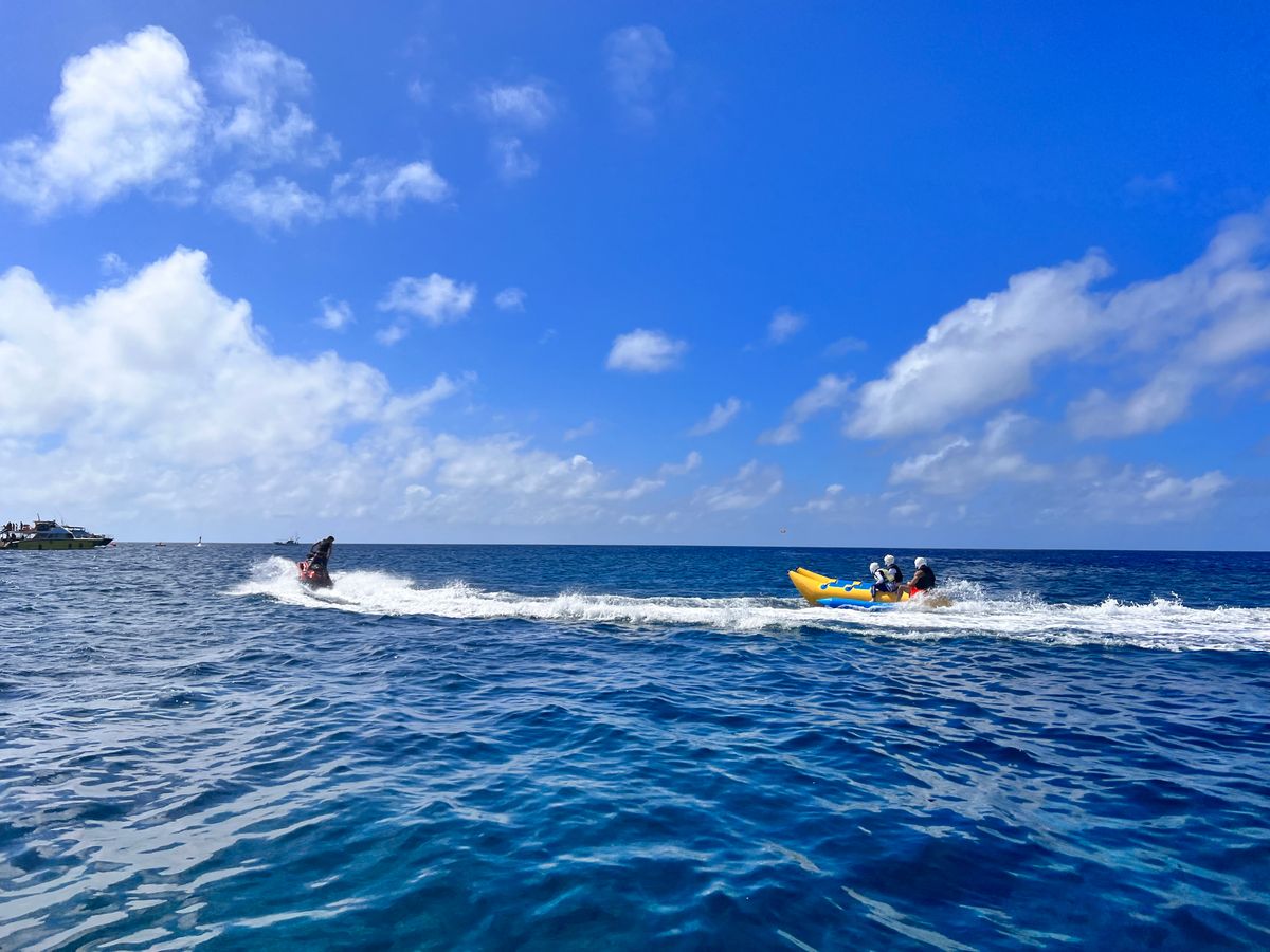 バナナボートも乗っていただいたようで、ありがとうございました。