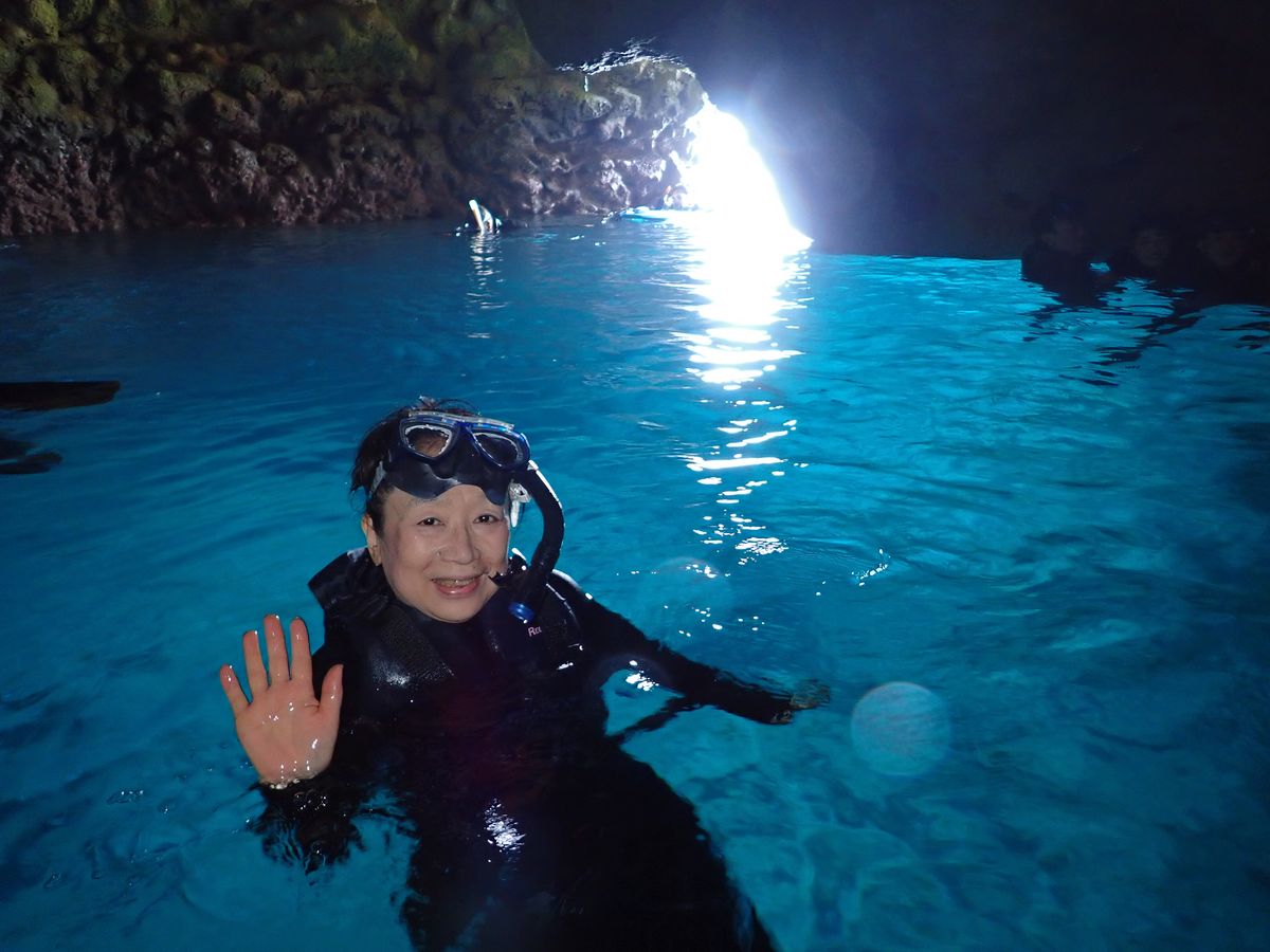 We participated as a couple, and it became the best memory. The weather was great, and since it was a weekday morning, we had the place to ourselves, allowing us to take our time and really observe the underwater scenery. The Blue Cave was incredibly beautiful—coral blue is the best! The ocean is just wonderful. Okinawa is the best! Guam was nice too, but Okinawa is amazing. Just being in Japan gives a sense of security, haha.