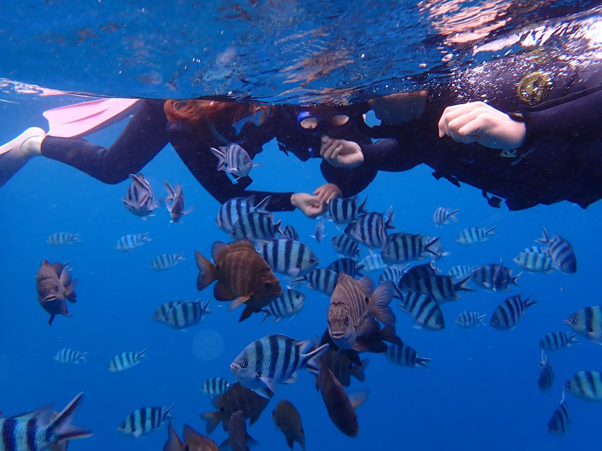 The guide conducted a fun tour at a good pace. They took many photos, and I was able to spend a pleasant time. It seems we were blessed with good weather and conditions; the guide was private, the sea was clear, and I was surrounded by many fish. I also enjoyed the Blue Cave and encountered scenery that I will never forget. I am truly grateful for the nature of the Ryukyu Islands and the guide. I would love to visit again.