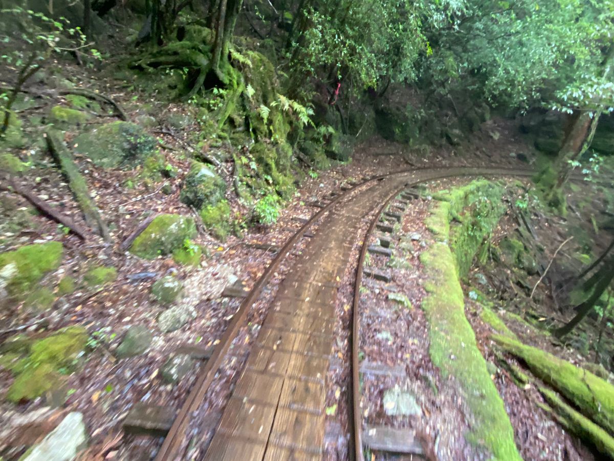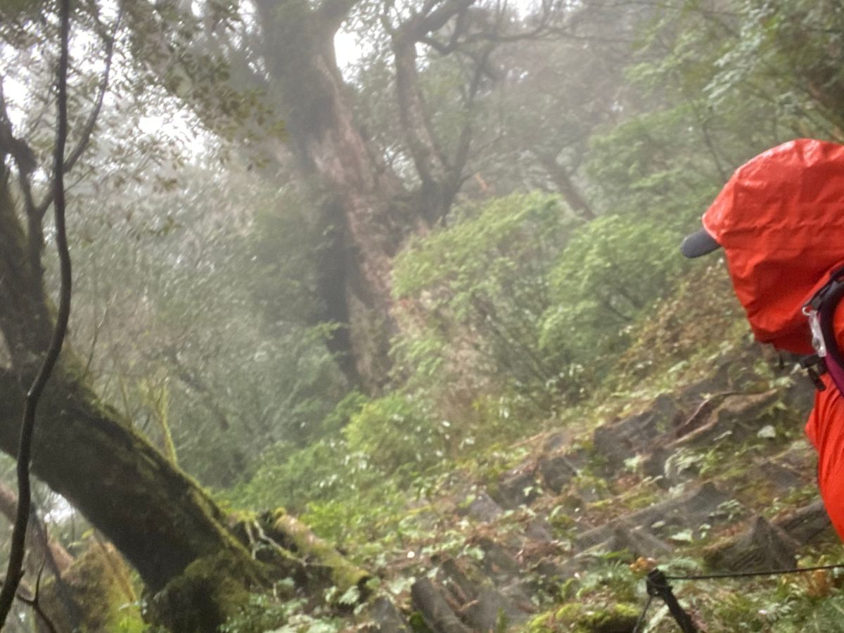 屋久島は雨が多いので、ザックカバー、レインウェア、山道に入るまでのトロッコの線路を歩く時は、折りたたみの傘を使用しました。