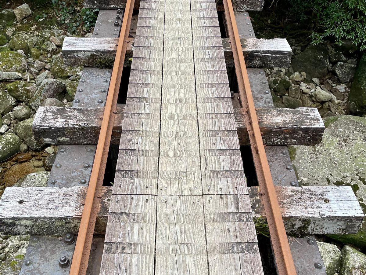- Around 12:30: We return to the entrance of the Okubo Path. We catch our breath and head back along the trolley path. It's a monotonous path, but since we know it from before, our feet feel relatively light.