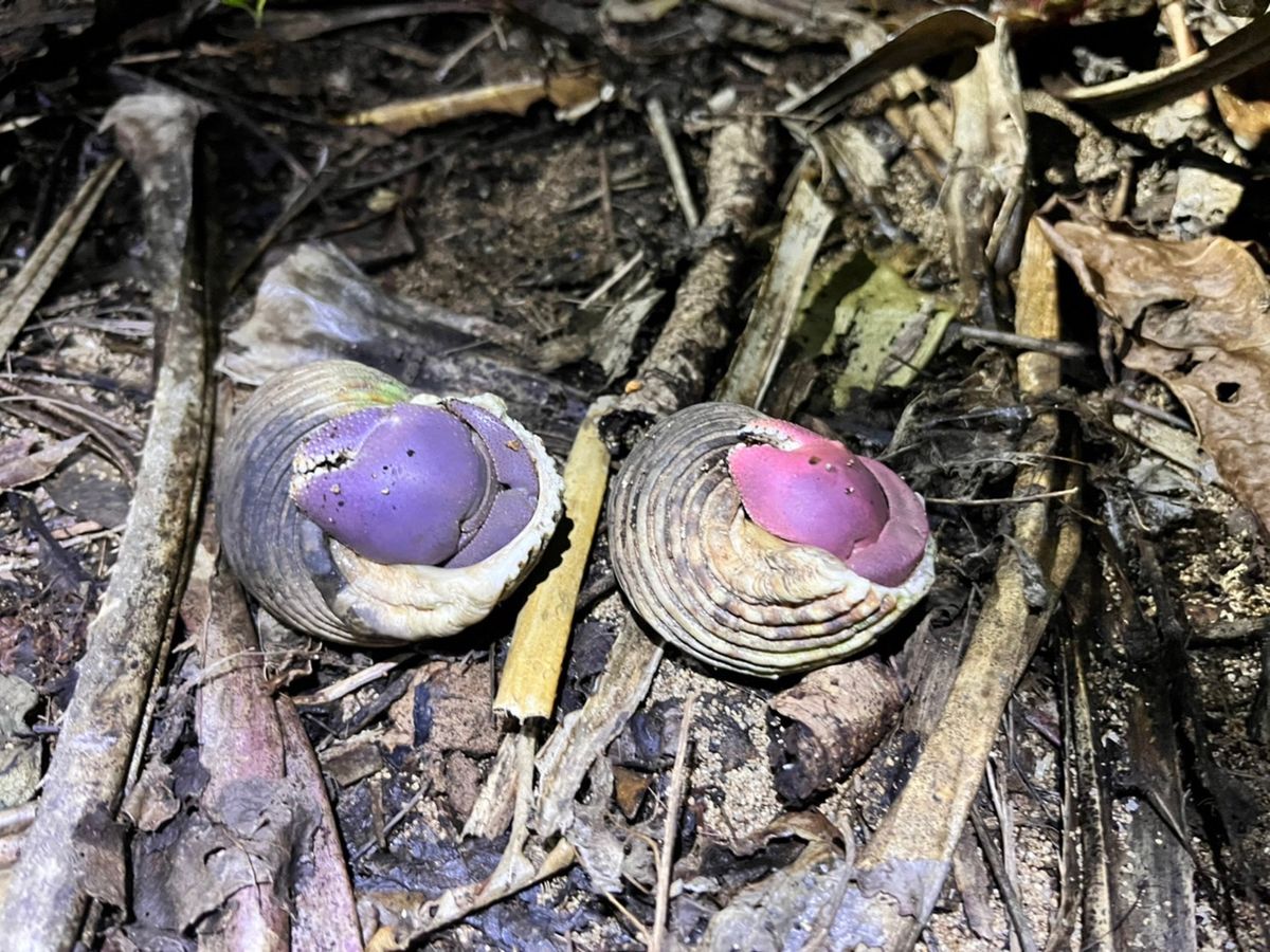 As we made our way through the dark jungle, relying on the light of our flashlights, we discovered frogs, lizards, crabs, and even coconut crabs on the beach... and we spotted a rare wild boar on the road!