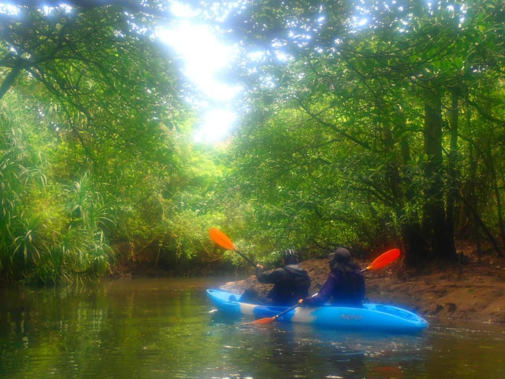 行けるとこまで行ったら途中カヤックから降り、大自然の中お湯を沸かしてコーヒとおしるこを淹れてくださいました。澄んだ水と美しい緑に囲まれて、素晴らしい時間を過ごせました。