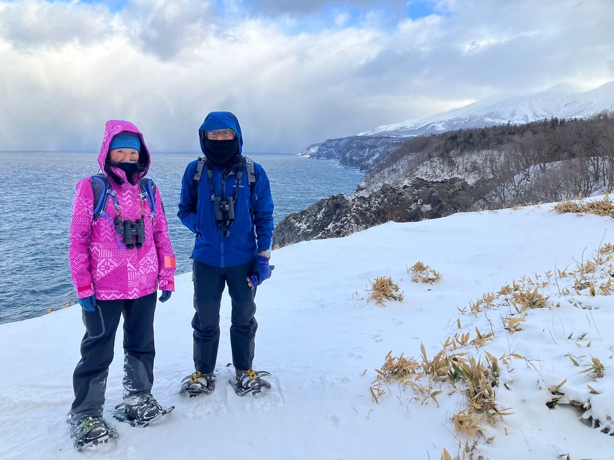 I walked through the empty, natural forest on snowshoes. Occasionally, I spotted birds or saw animal tracks in the snow and learned what kind of tracks they were. In this great outdoors, I encountered red foxes and deer while also learning about animal ecology. At Furepe Falls, a strong wind blew, drastically lowering the perceived temperature and allowing me to experience the harshness of winter in Shiretoko. After that, since I had no physical issues, I was guided to a place called "Men's Tears." The view of the Sea of Okhotsk and the steep coastline of the Shiretoko Peninsula from here was breathtaking. The staff provided detailed guidance, presenting materials at various points despite the cold, which made it easy to understand. In hindsight, I thought I could have dressed a bit warmer. Thank you very much.
