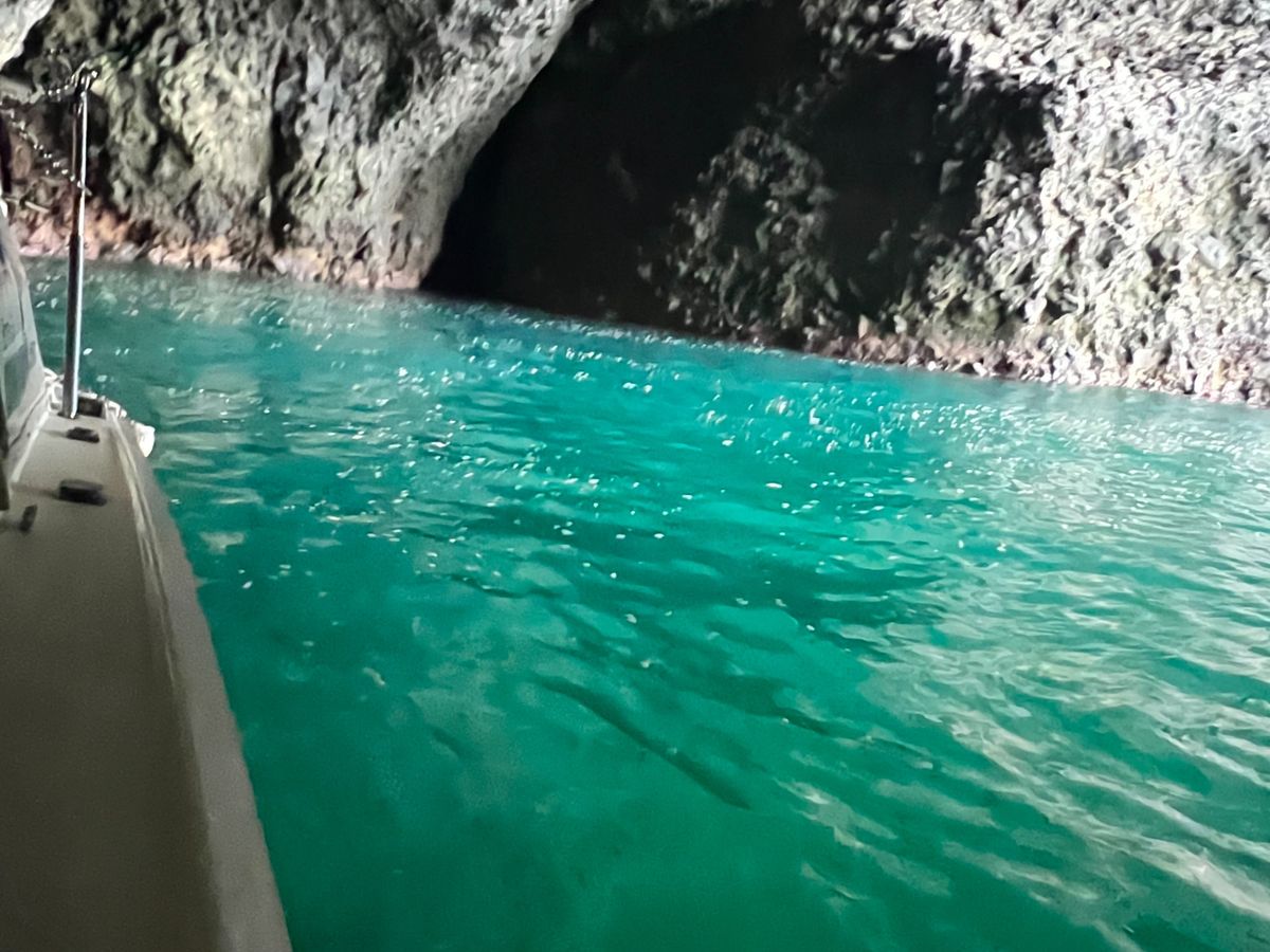 There were several boat cruises at the Blue Cave, but I was glad I booked this one. The captain was a foreigner who, while speaking in a polite yet amusingly broken Japanese, explained a lot while steering the boat and guided us to various famous spots. He was very considerate towards those who got seasick, offering them bags and checking in on them. Inside the cave, he skillfully showcased the beautiful emerald blue moments for everyone to enjoy. I was extremely satisfied!