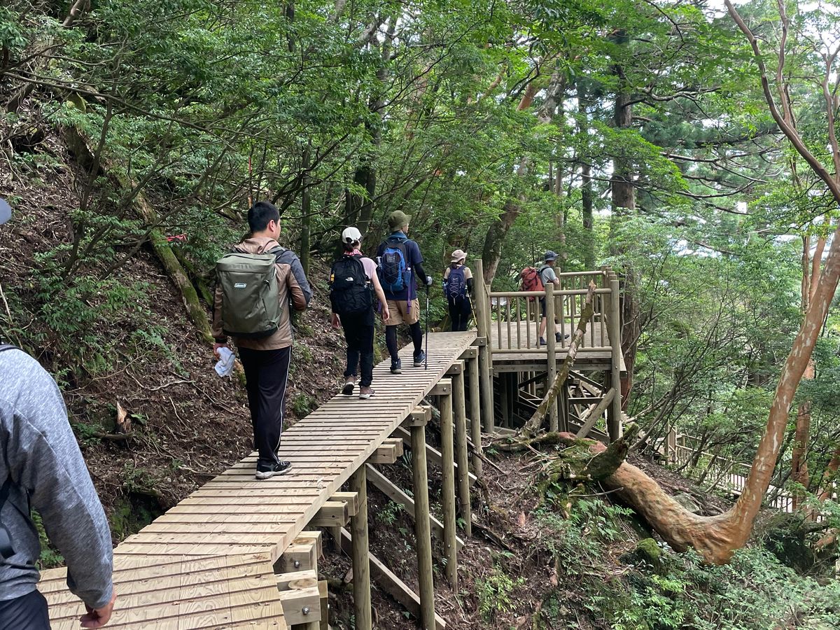 We split into groups of six and were guided up the mountain. I think there’s a different charm to the tour with explanations compared to going individually. At the final destination, Jomon Sugi was waiting for us, and it was something beyond words.