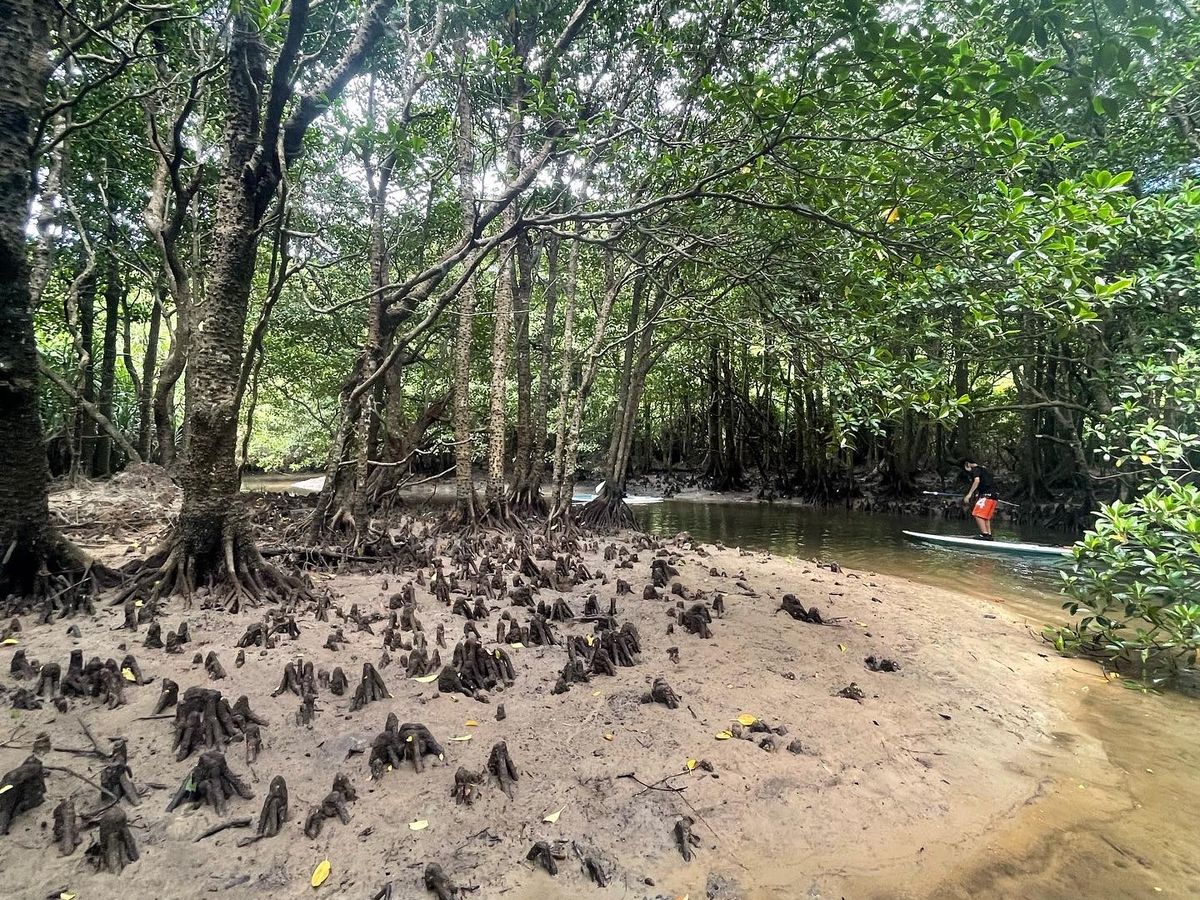 In the morning, I experienced SUP for the first time in the mangrove forest at Miyara River. It was quite challenging, and I struggled to go straight, but with the guidance of our instructor, I managed to enjoy the tour without falling even once.